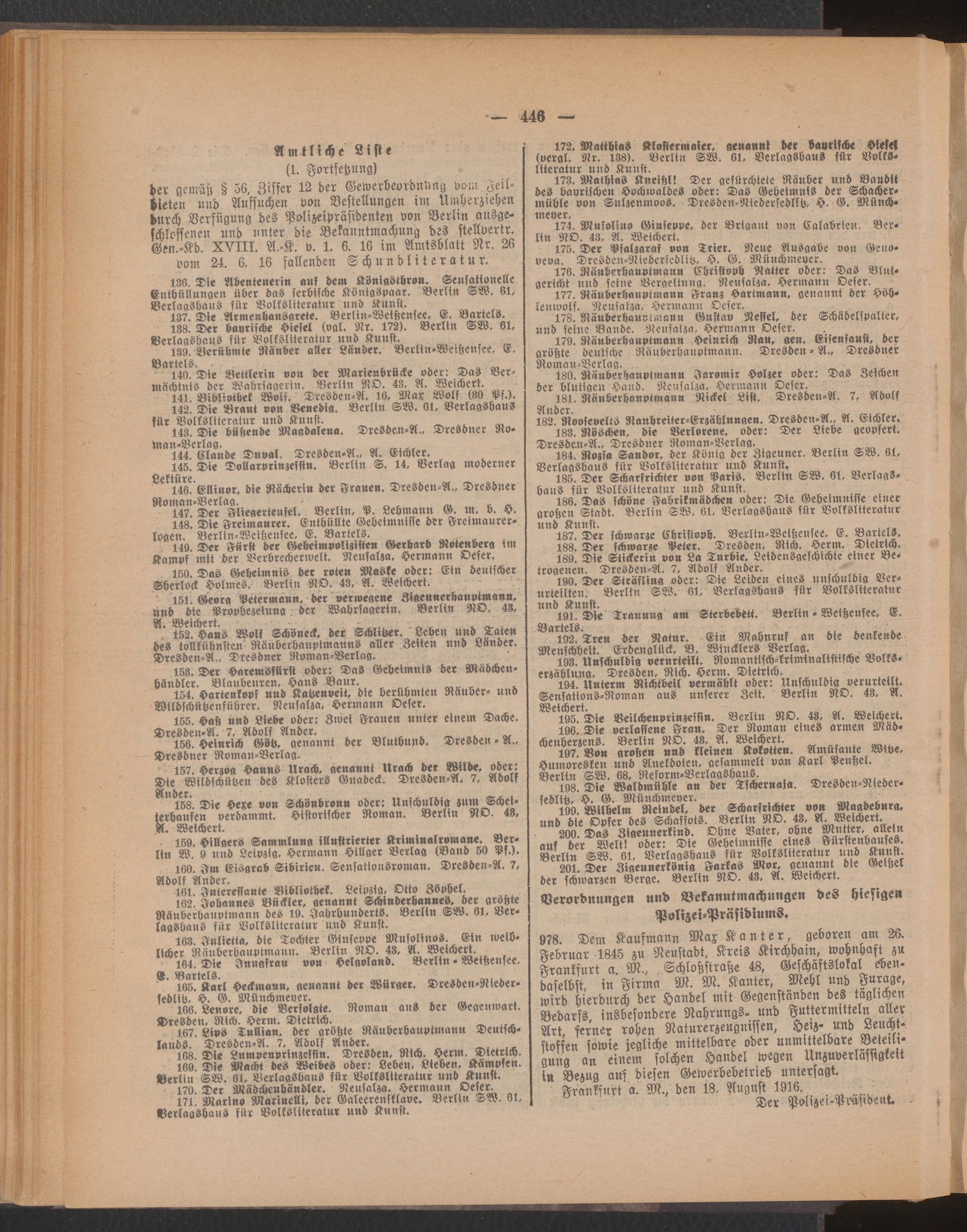 Amtsblatt für den Stadtkreis Frankfurt a.M.. 1828-1918