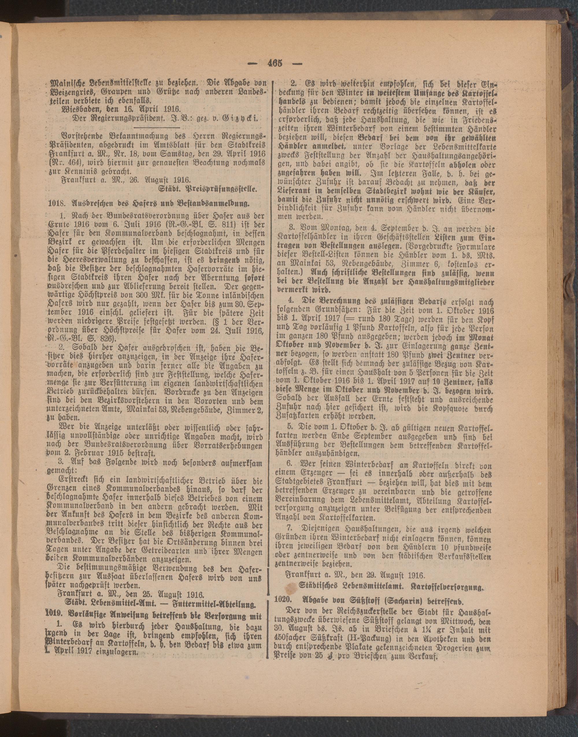 Amtsblatt für den Stadtkreis Frankfurt a.M.. 1828-1918