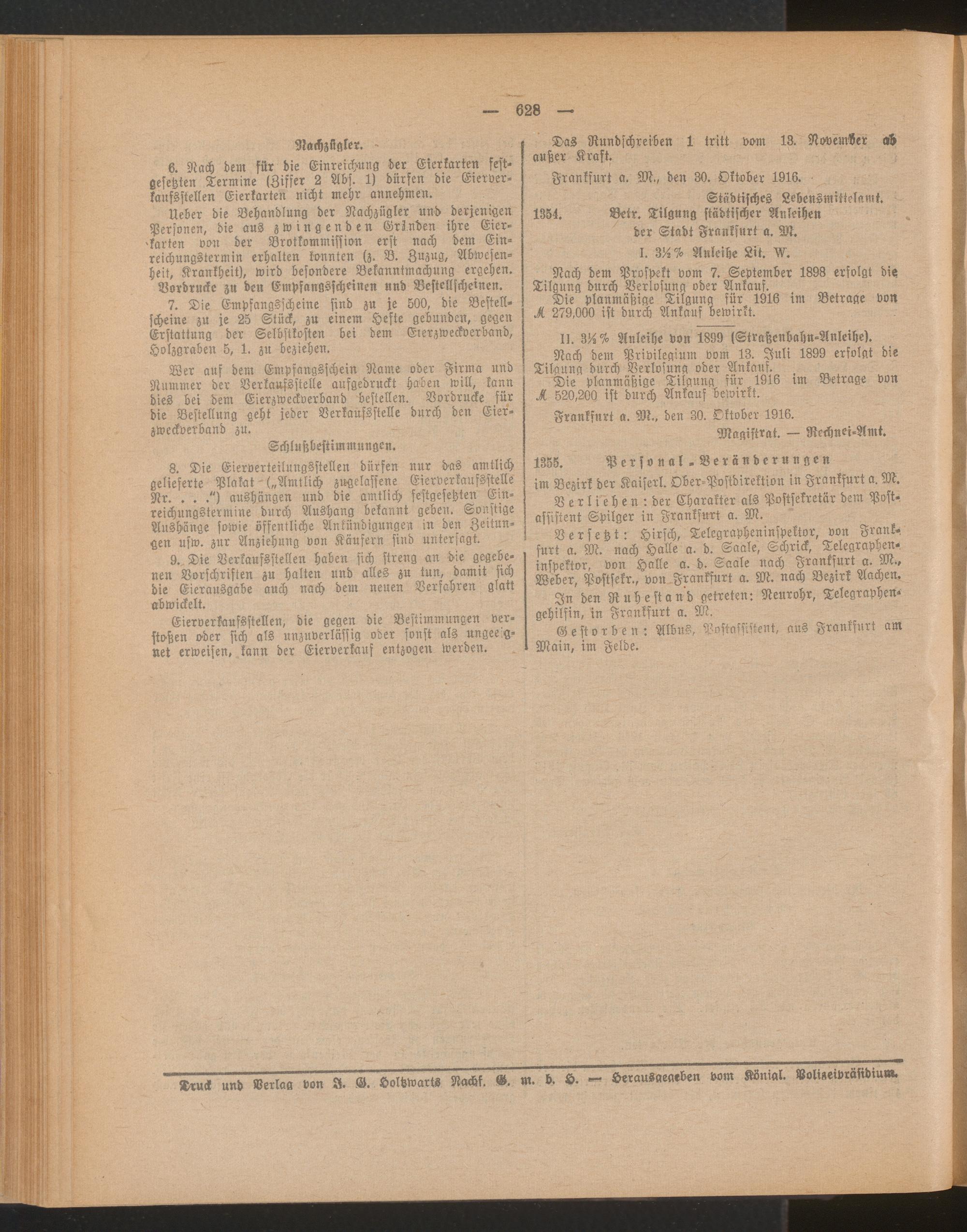 Amtsblatt für den Stadtkreis Frankfurt a.M.. 1828-1918