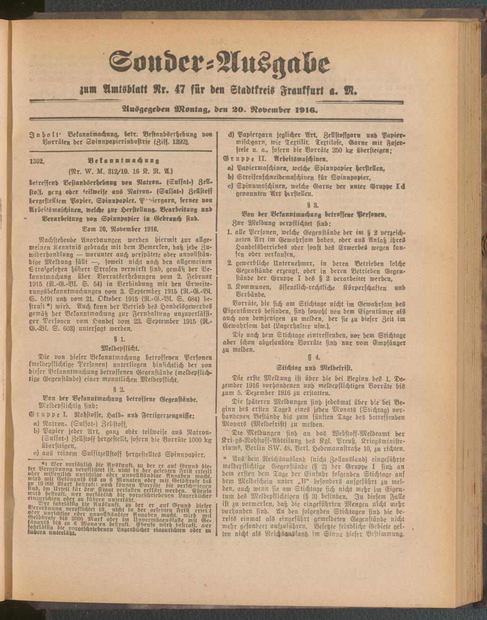 20.11.1916 = Sonder-Ausgabe zu Nr. 47