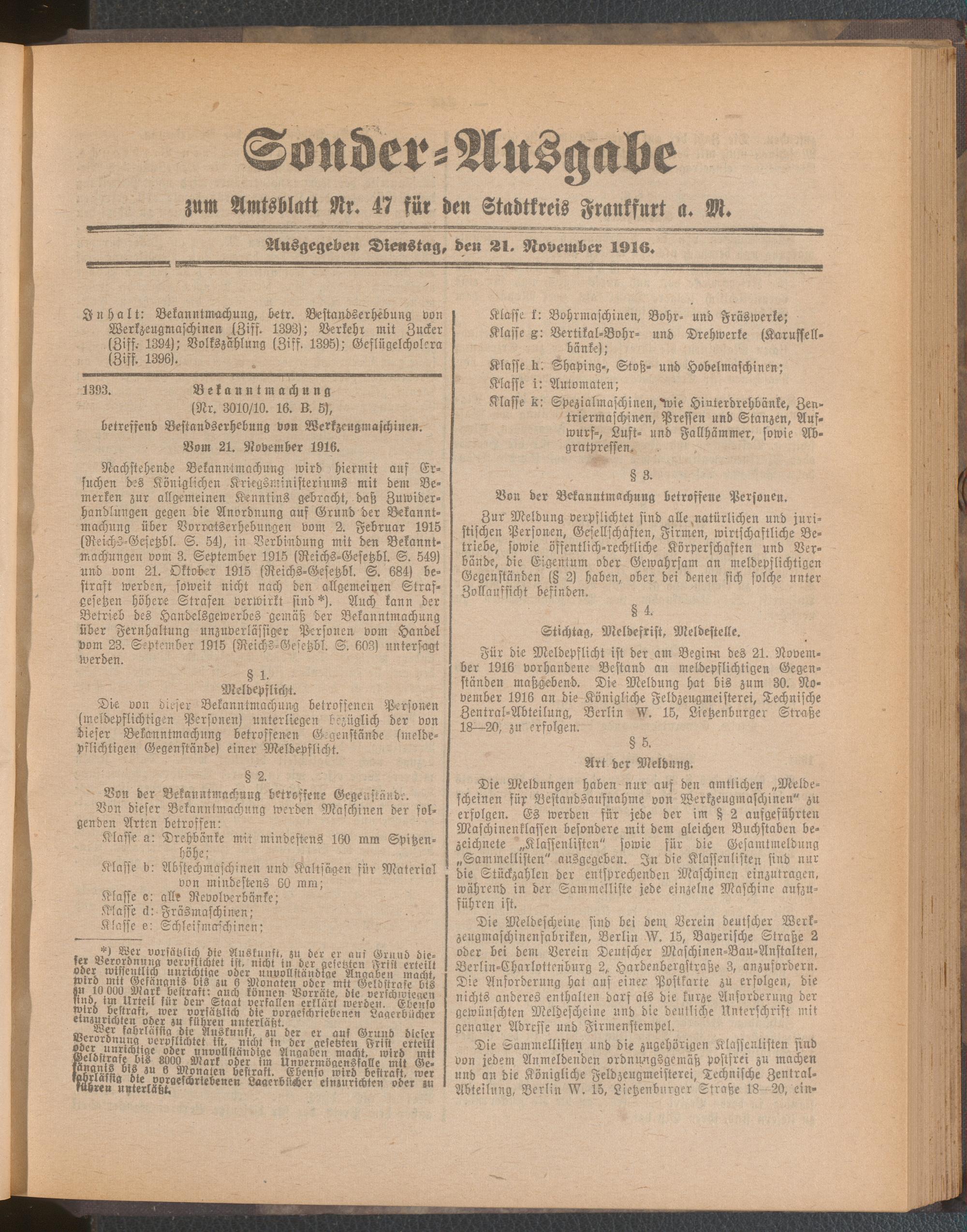 21.11.1916 = Sonder-Ausgabe zu Nr. 47