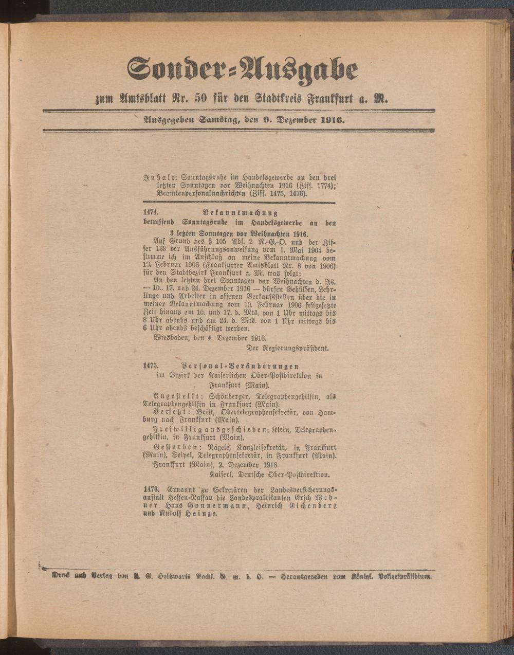 09.12.1916 = Sonder-Ausgabe zu Nr. 50