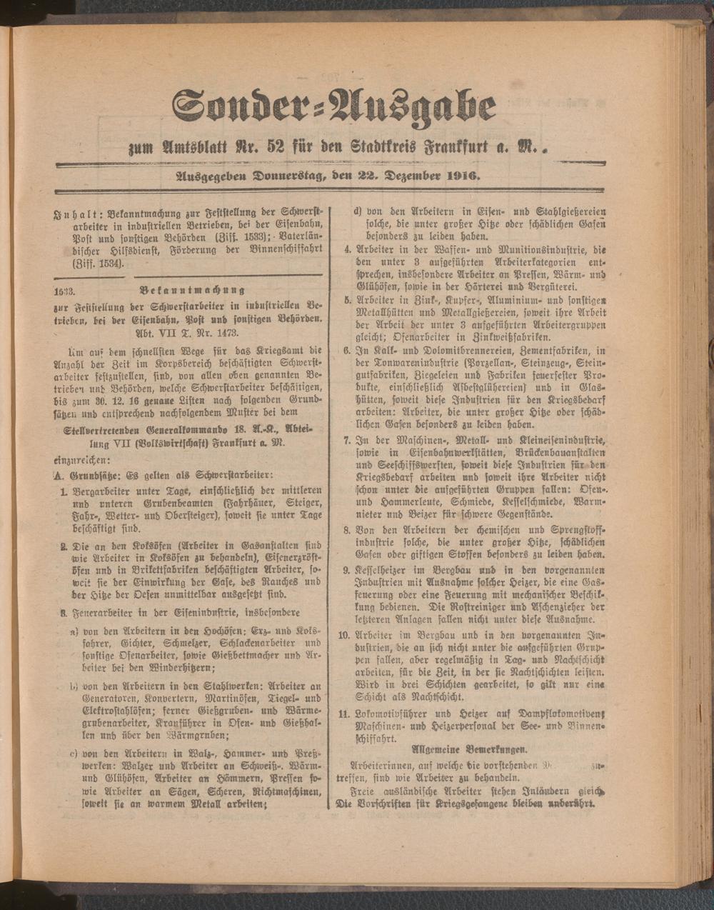 22.12.1916 = Sonder-Ausgabe zu Nr. 52