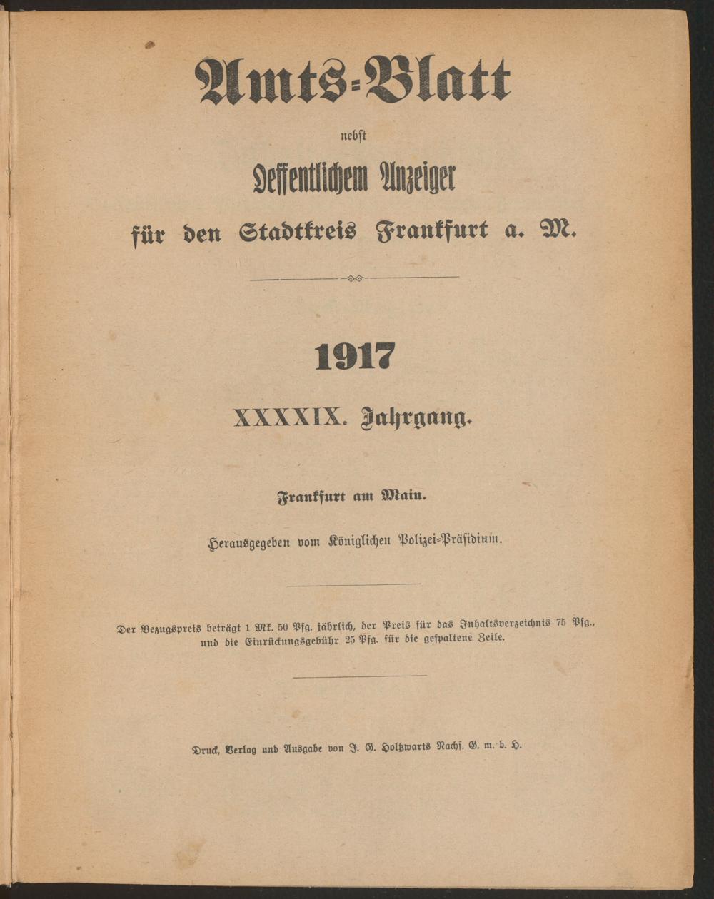 Amtsblatt für den Stadtkreis Frankfurt a.M.. 1828-1918