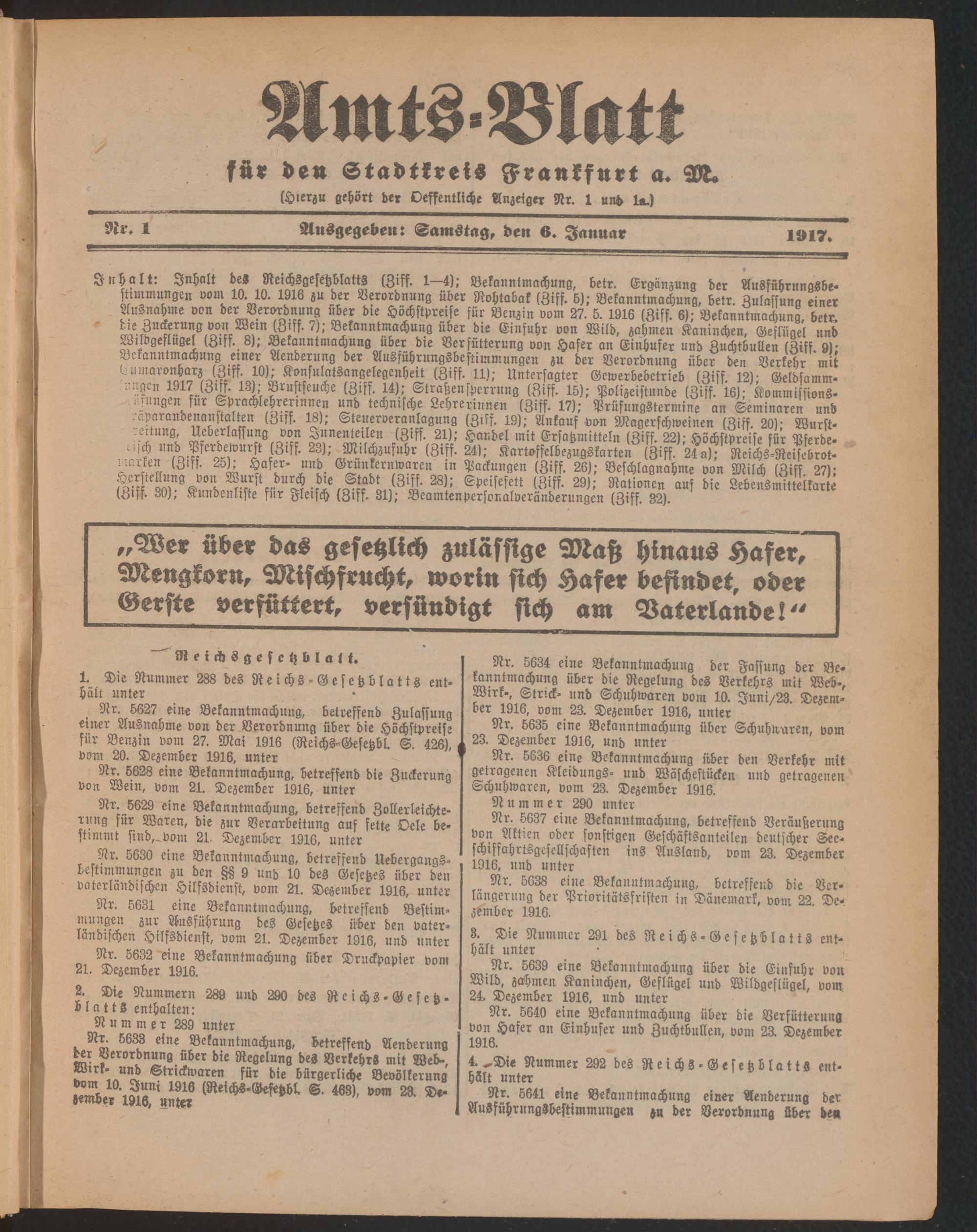 Amtsblatt für den Stadtkreis Frankfurt a.M.....