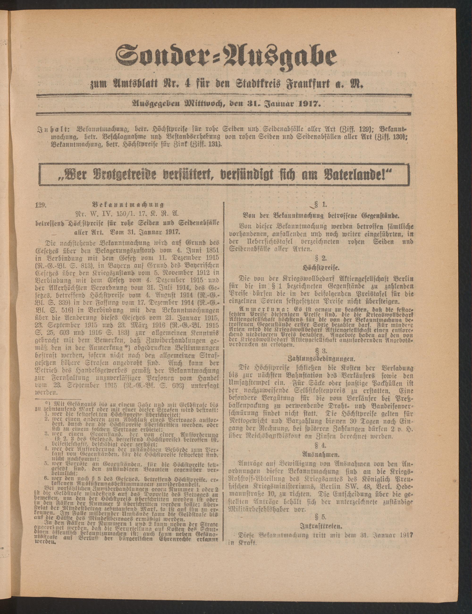 31.01.1917= Sonder-Ausgabe zu Nr. 4