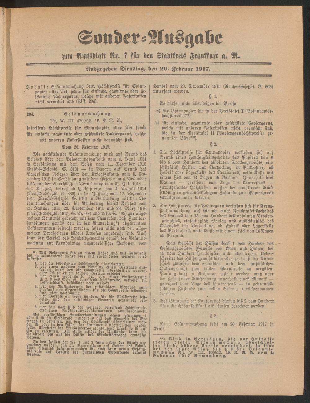 20.02.1917= Sonder-Ausgabe zu Nr. 7