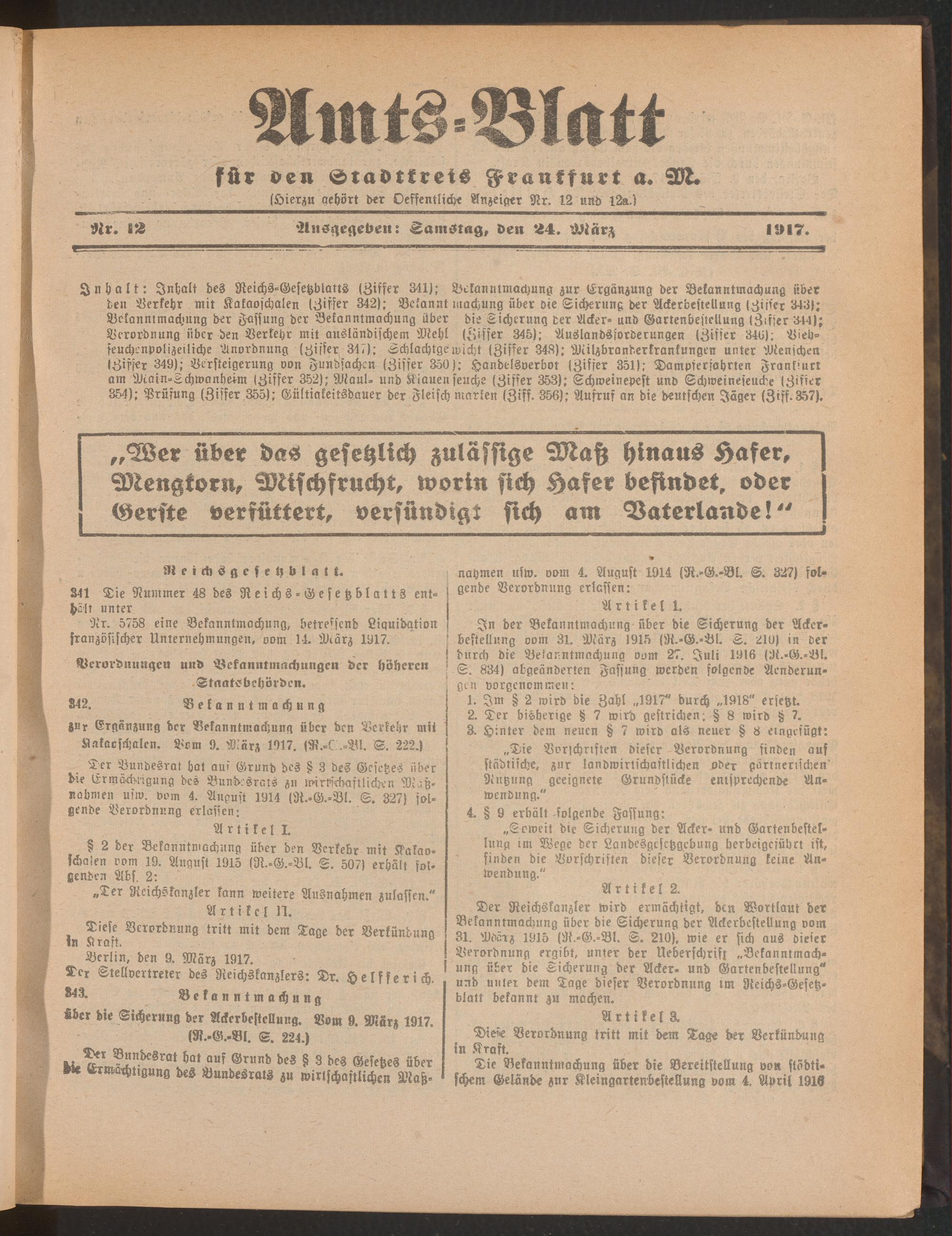 Amtsblatt für den Stadtkreis Frankfurt a.M.....