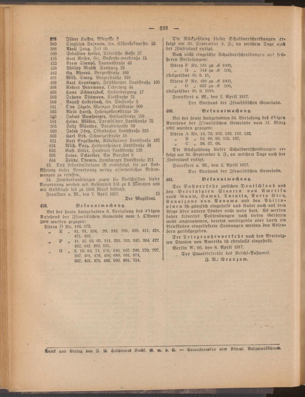 Amtsblatt für den Stadtkreis Frankfurt a.M.....