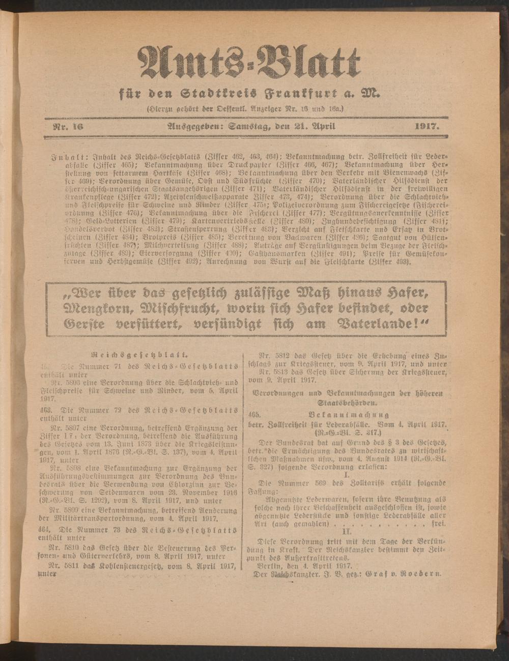 Amtsblatt für den Stadtkreis Frankfurt a.M.....