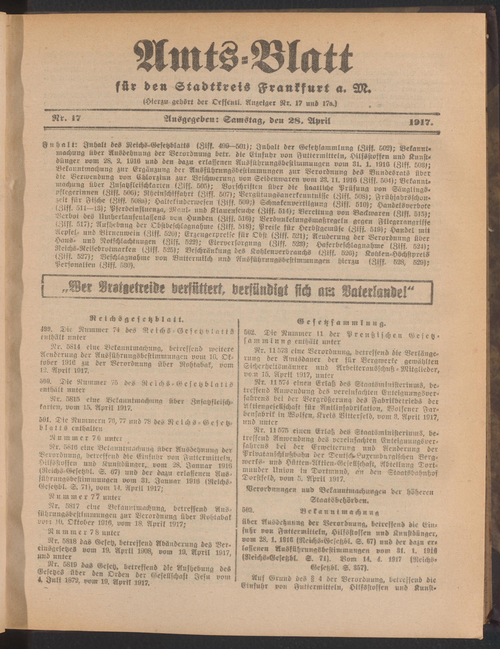 Amtsblatt für den Stadtkreis Frankfurt a.M.....