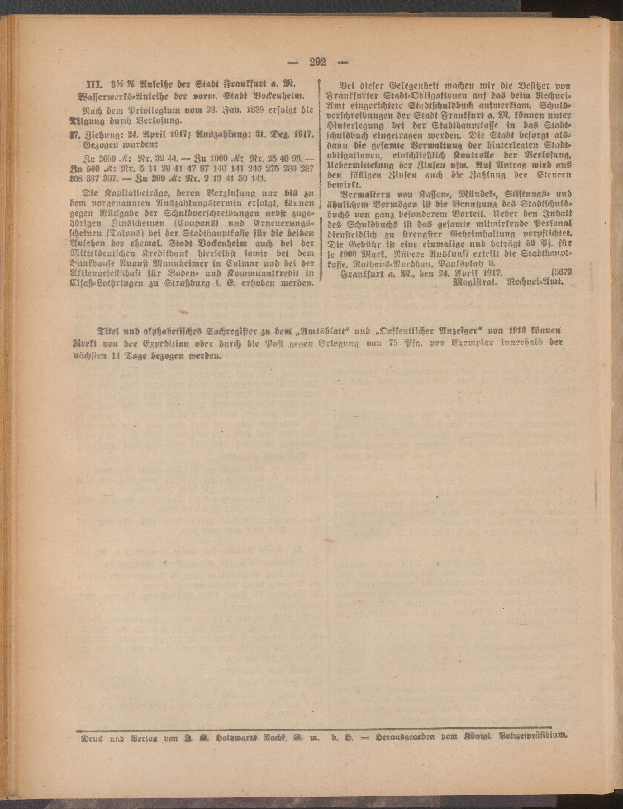 Amtsblatt für den Stadtkreis Frankfurt a.M.....