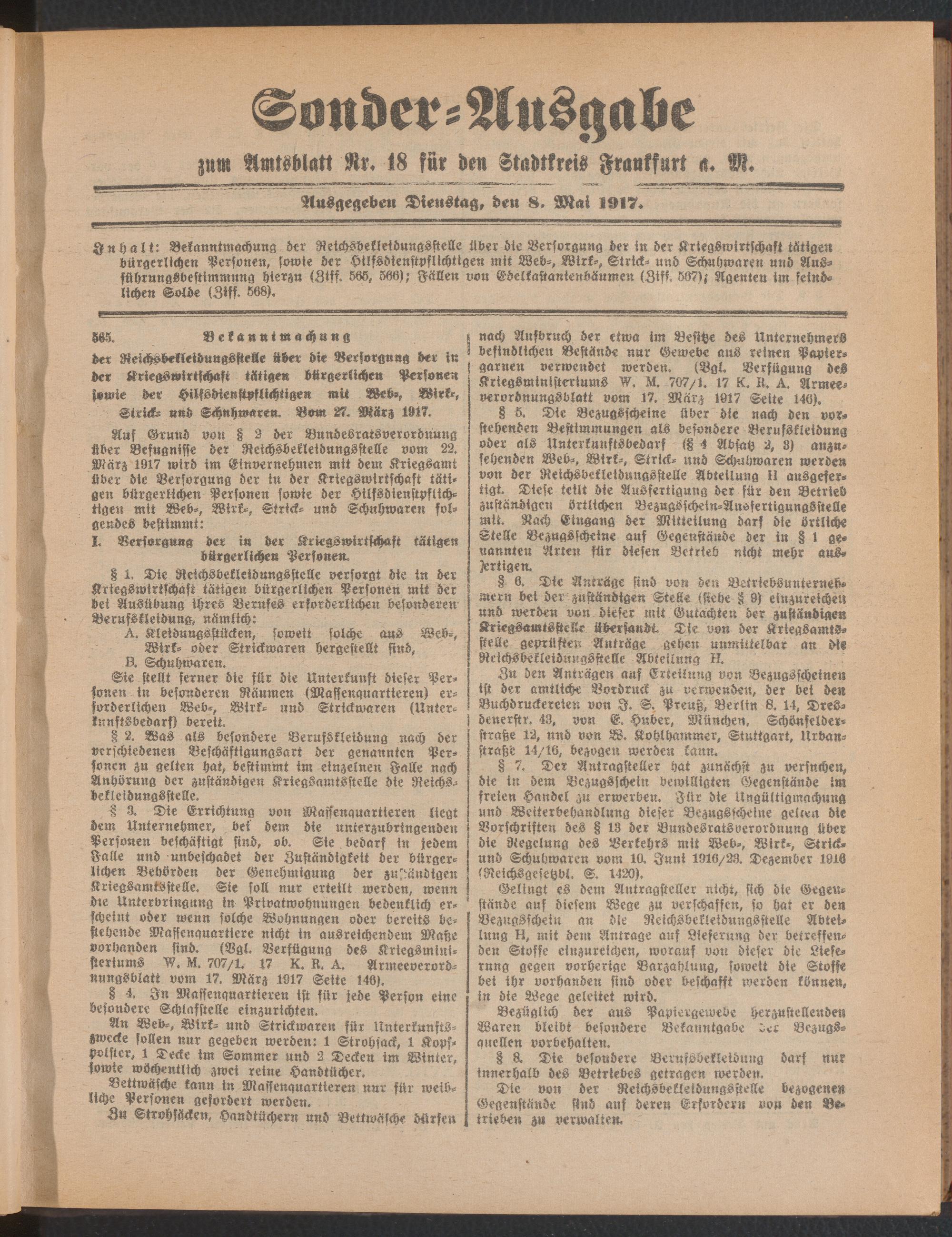 08.05.1917= Sonder-Ausgabe zu Nr. 18