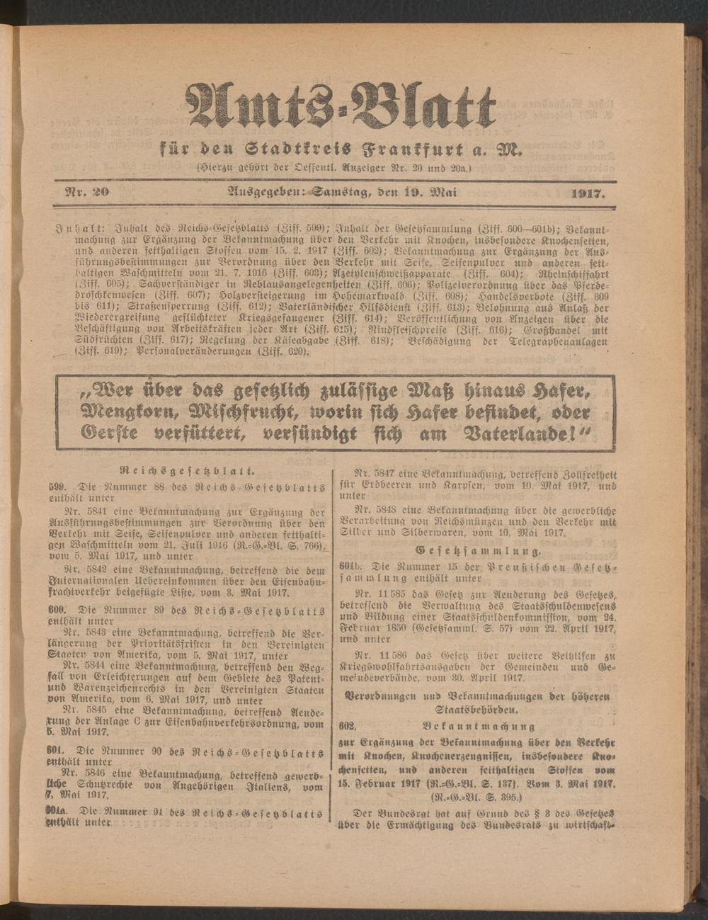 Amtsblatt für den Stadtkreis Frankfurt a.M.....