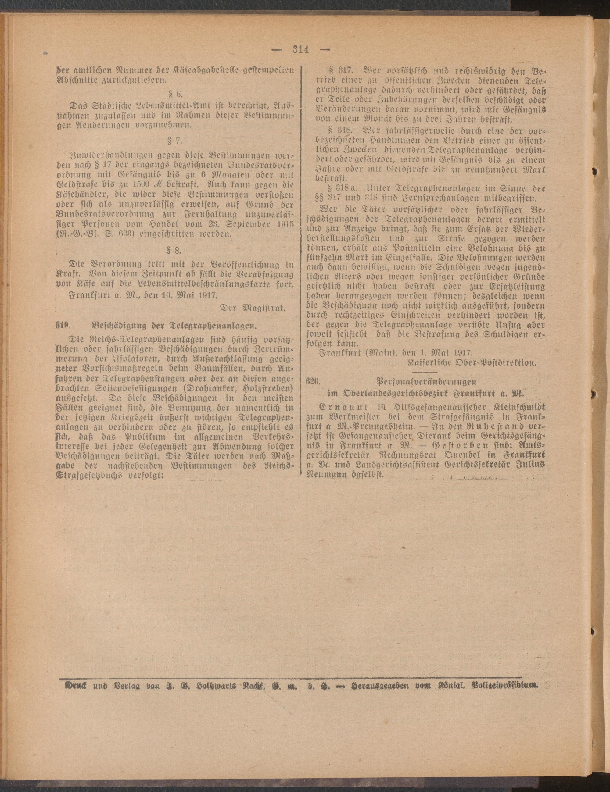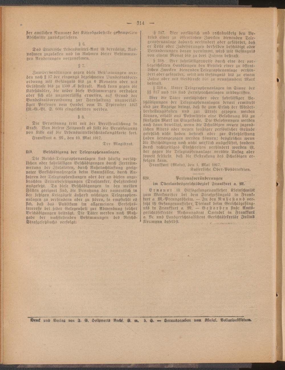 Amtsblatt für den Stadtkreis Frankfurt a.M.. 1828-1918
