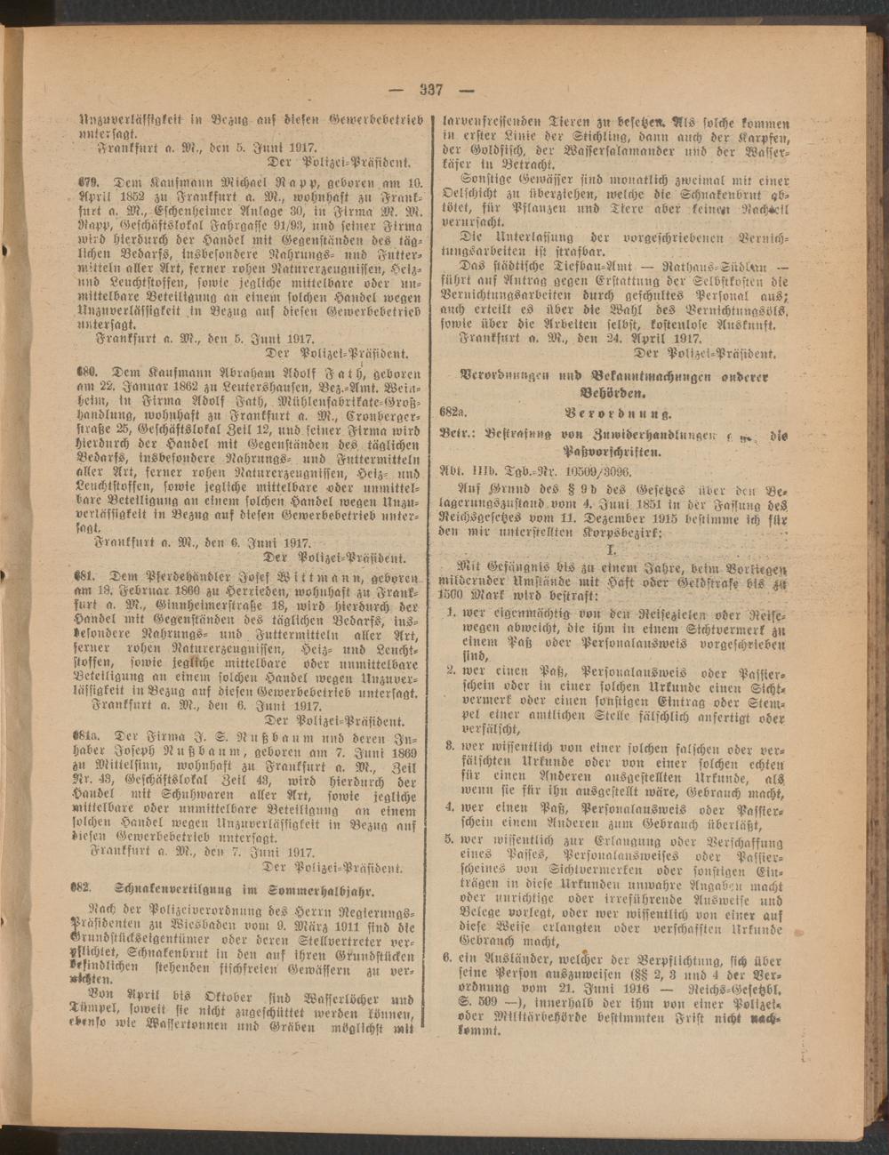Amtsblatt für den Stadtkreis Frankfurt a.M.. 1828-1918