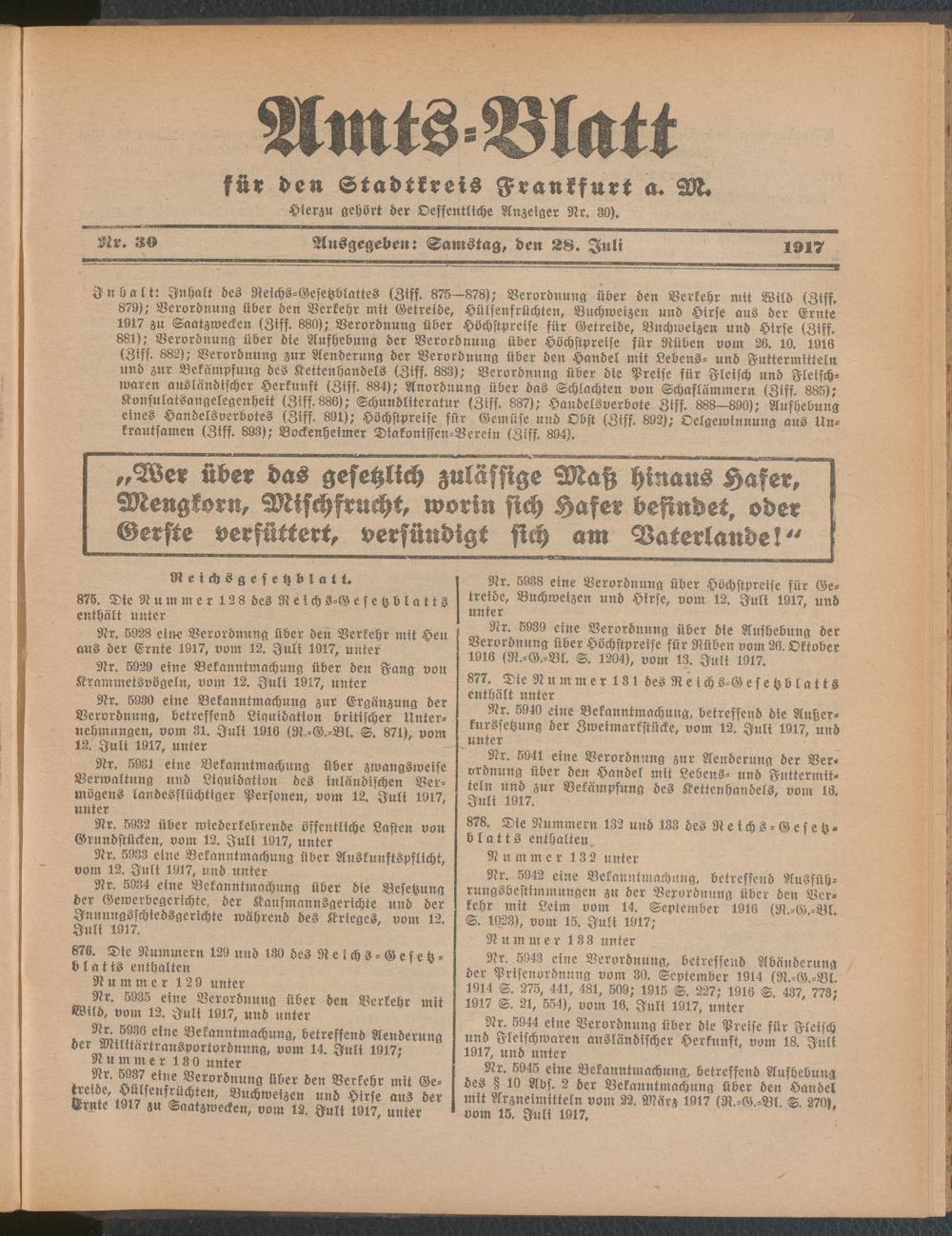 Amtsblatt für den Stadtkreis Frankfurt a.M.....