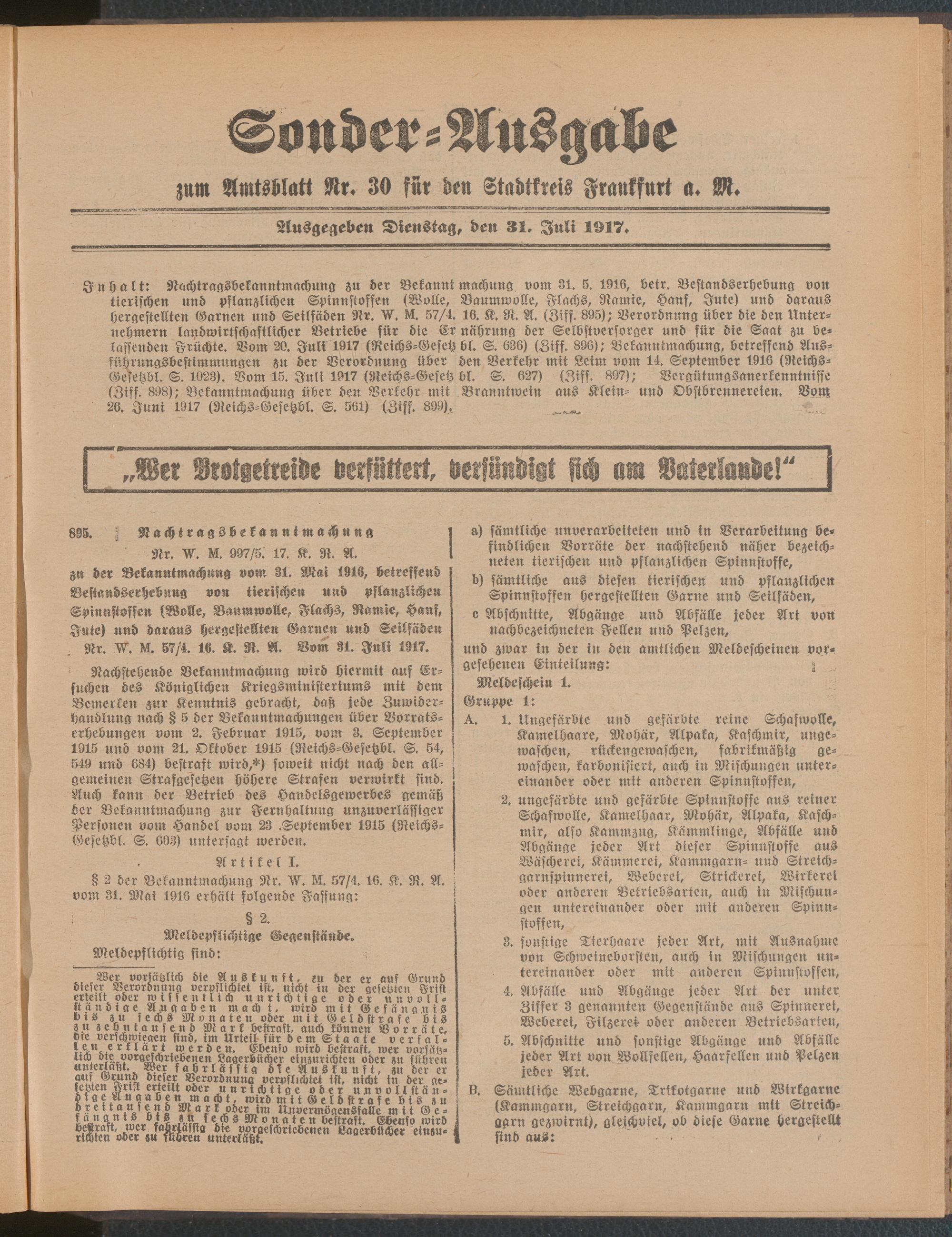 31.07.1917 = Sonder-Ausgabe zu Nr. 30