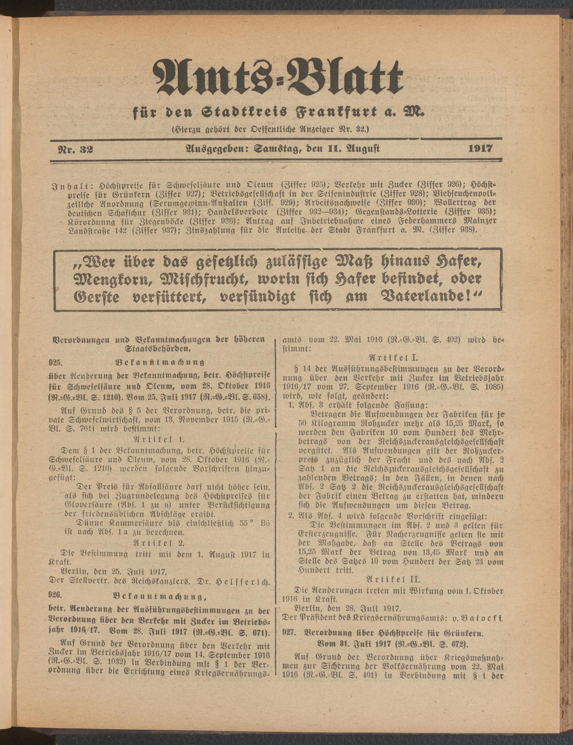 Amtsblatt für den Stadtkreis Frankfurt a.M.....