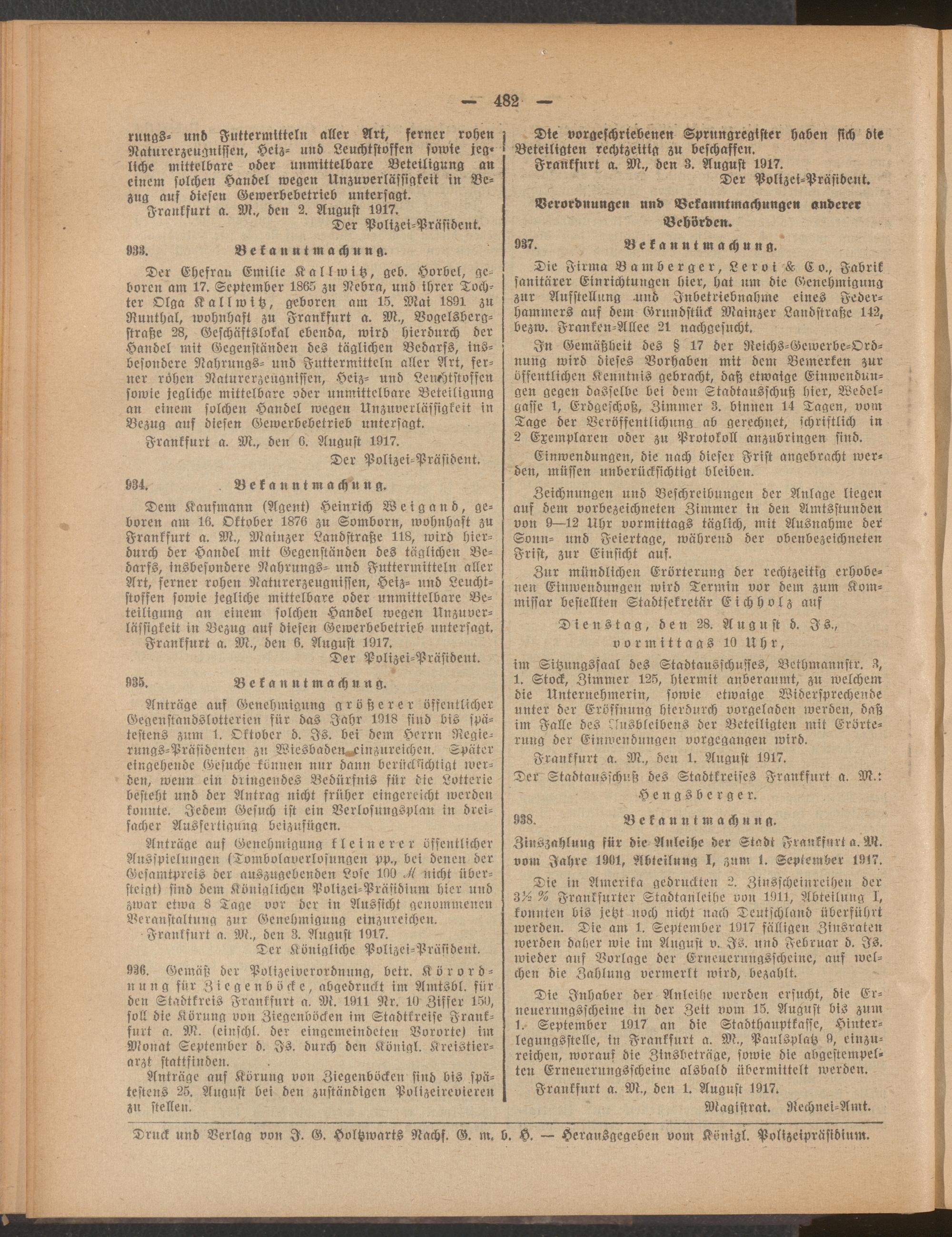 Amtsblatt für den Stadtkreis Frankfurt a.M.....
