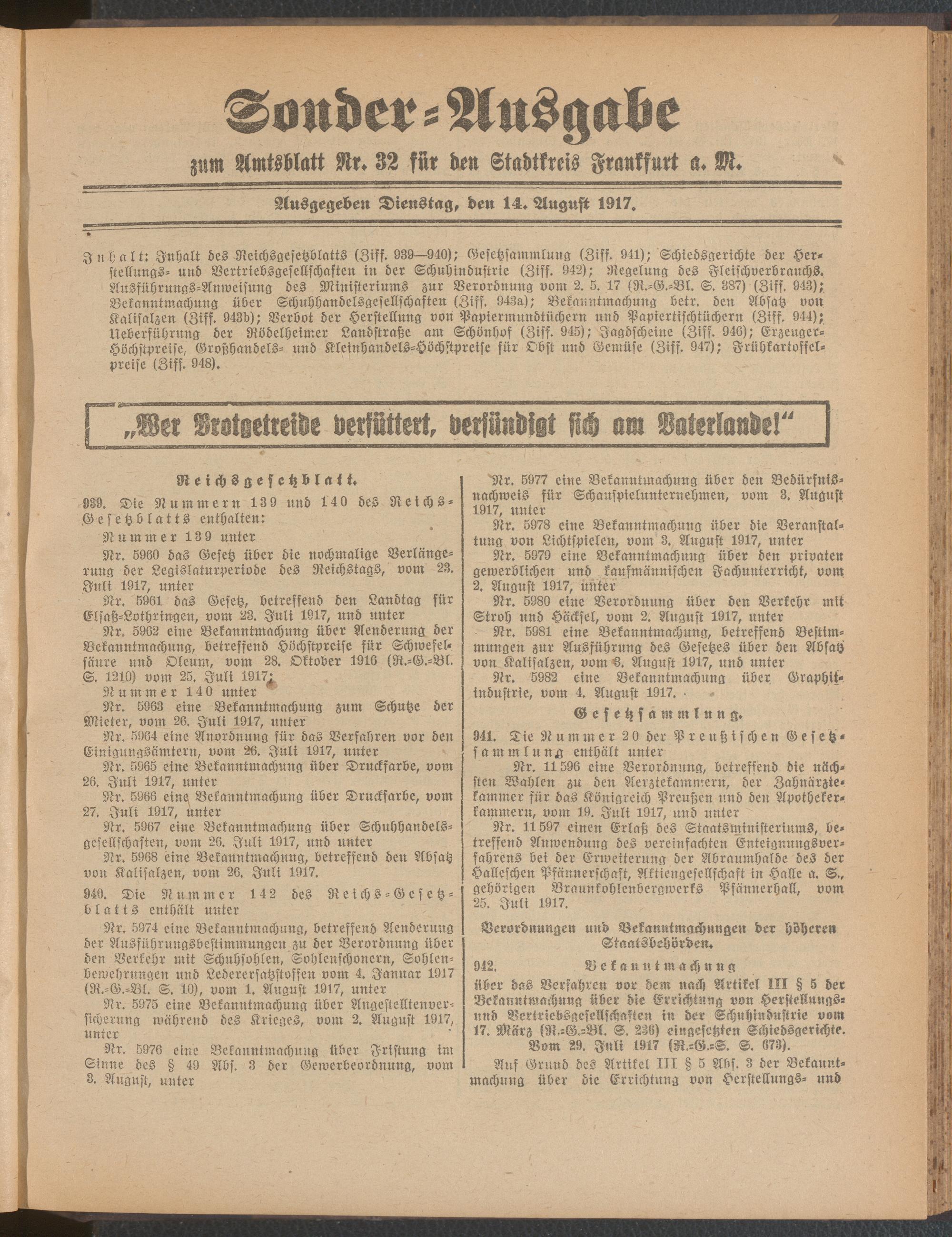 14.08.1917 = Sonder-Ausgabe zu Nr. 32
