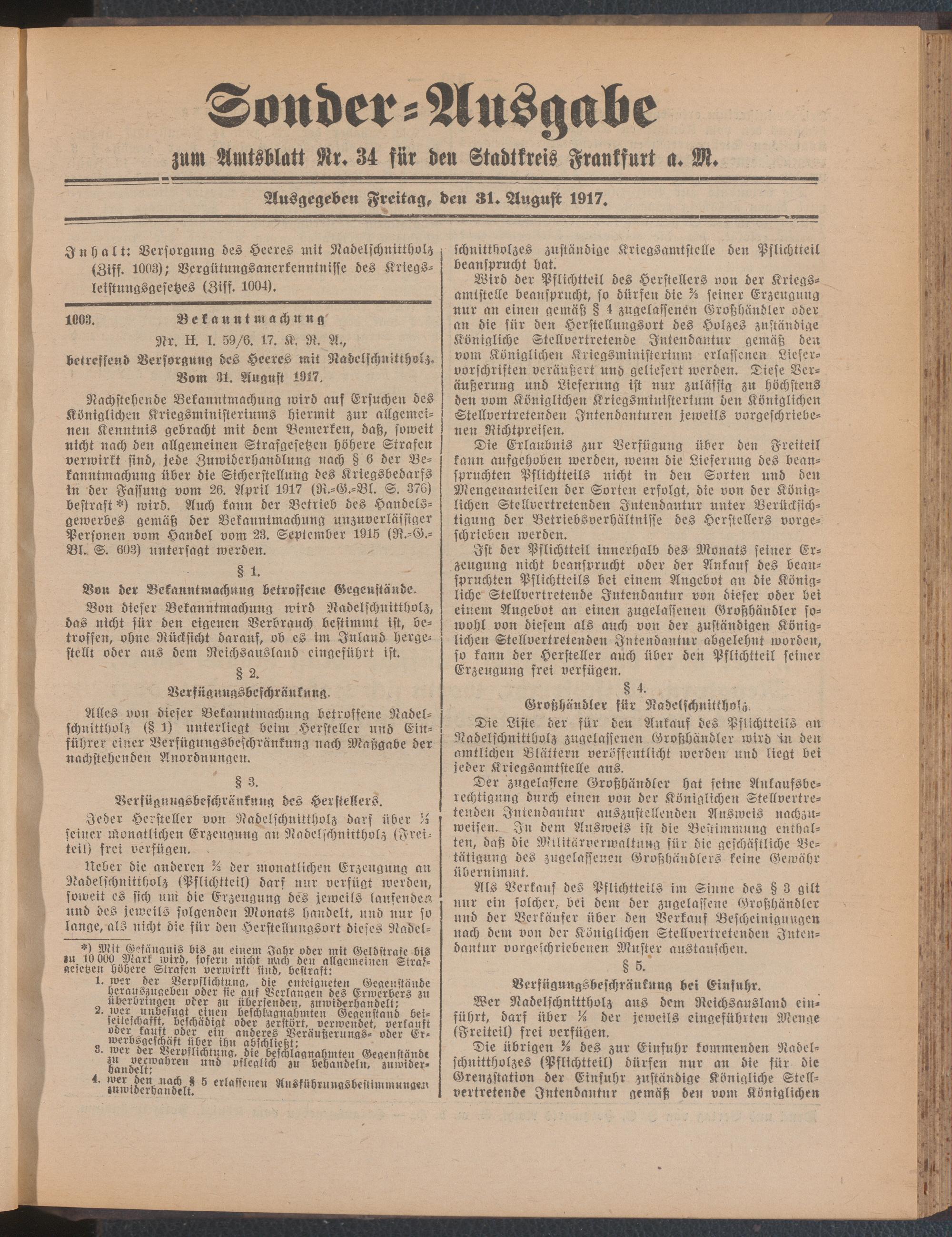 31.08.1917 = Sonder-Ausgabe zu Nr. 34