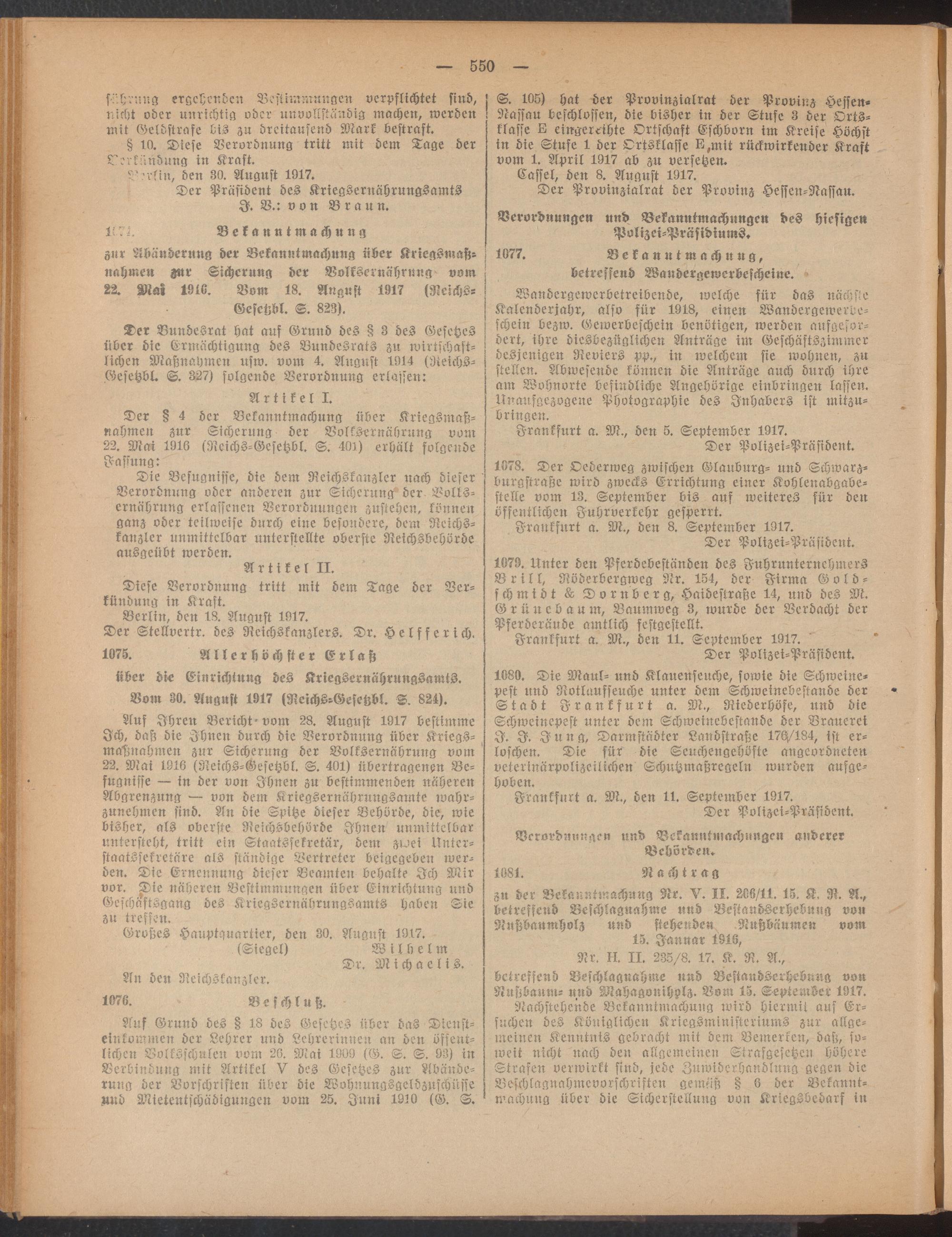 Amtsblatt für den Stadtkreis Frankfurt a.M.. 1828-1918