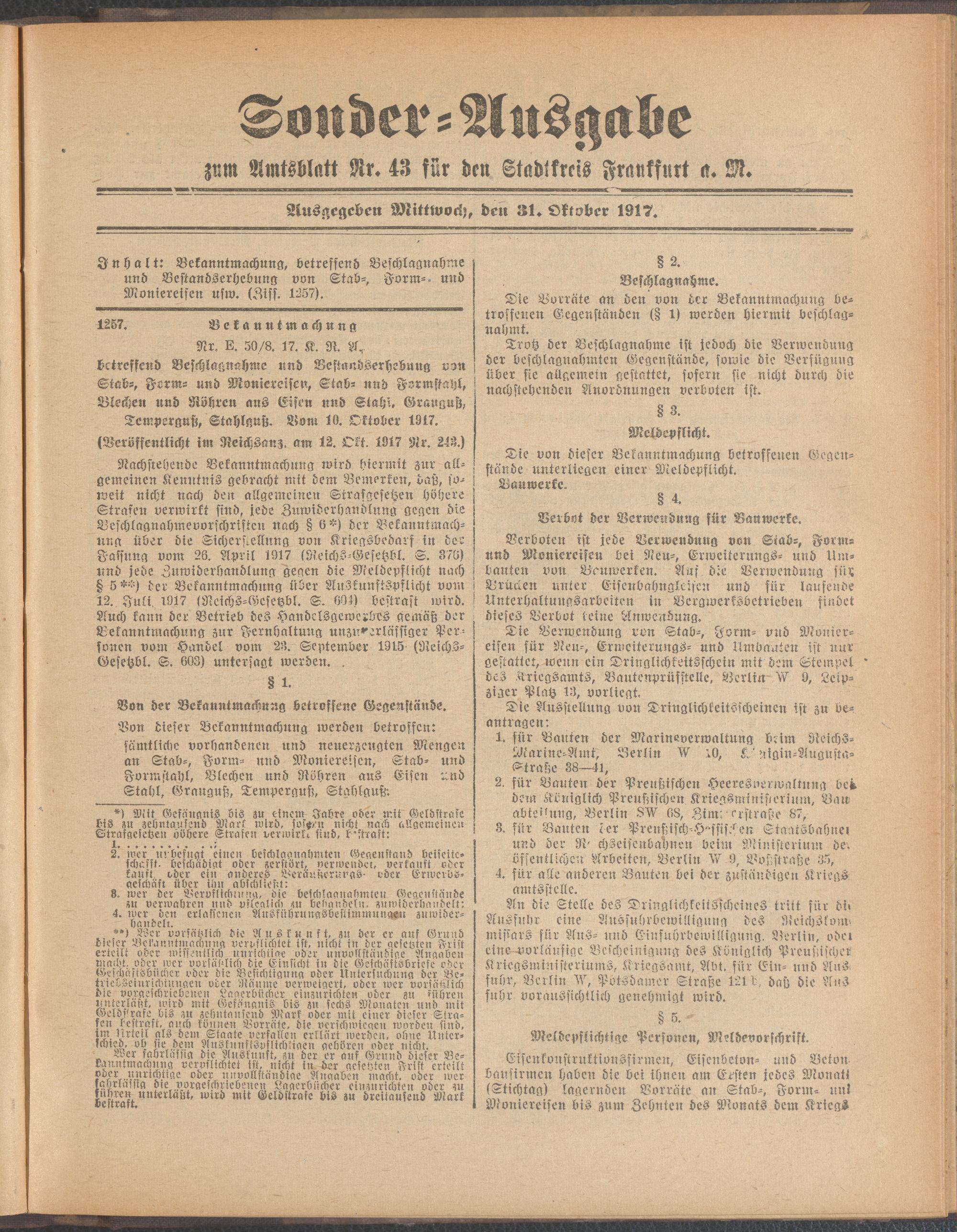31.10.1917 = Sonder-Ausgabe zu Nr. 43