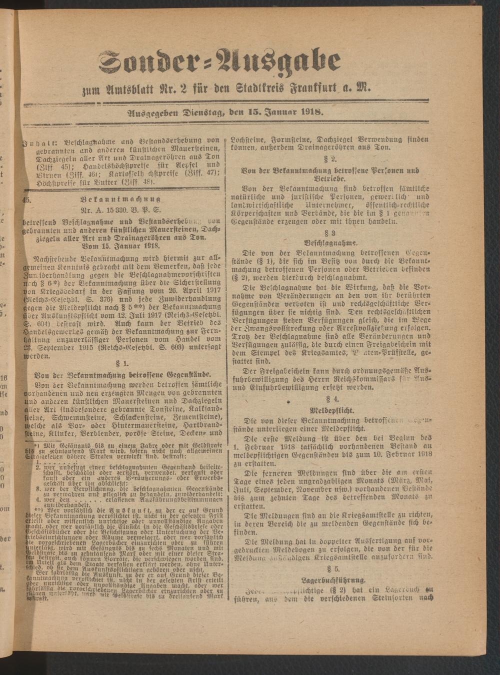 15.01.1918 = Sonder-Ausgabe zu Nr. 2