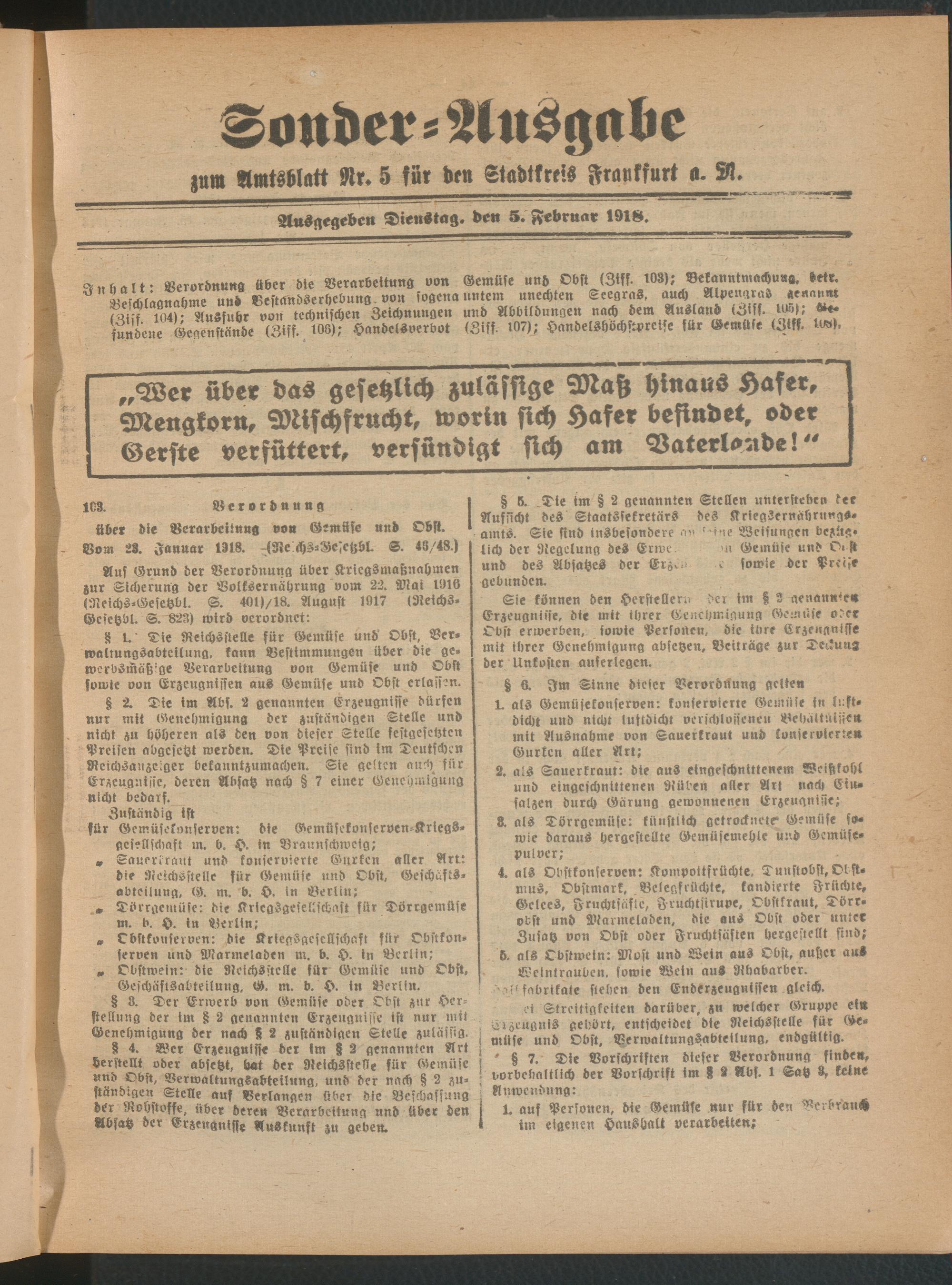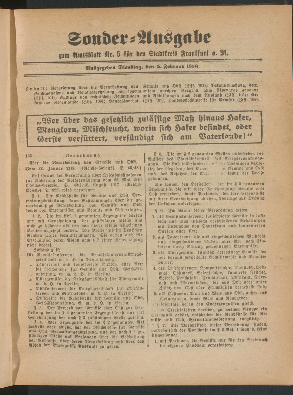 05.02.1918 = Sonder-Ausgabe zu Nr. 5