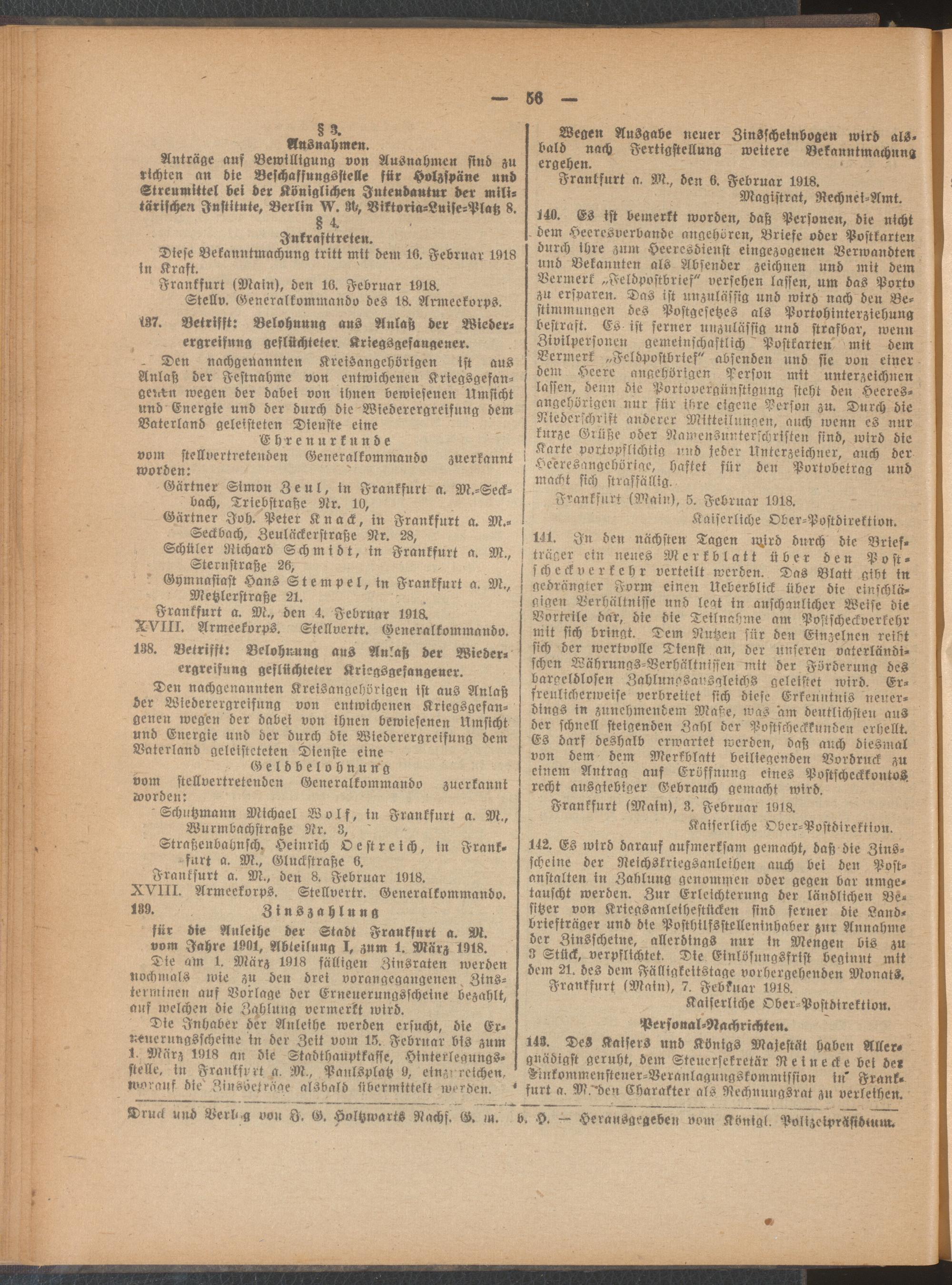 Amtsblatt für den Stadtkreis Frankfurt a.M.. 1828-1918