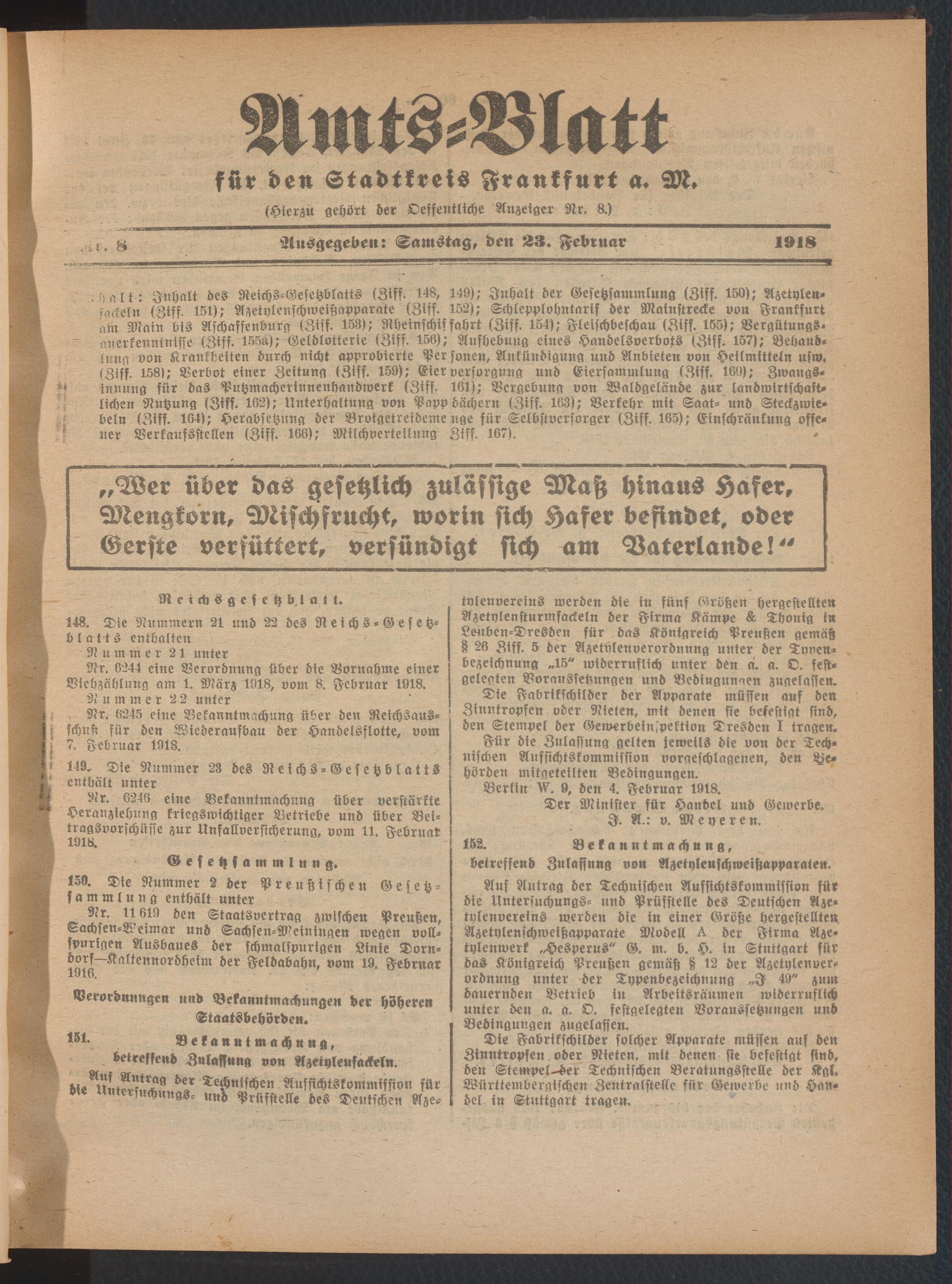 Amtsblatt für den Stadtkreis Frankfurt a.M.....