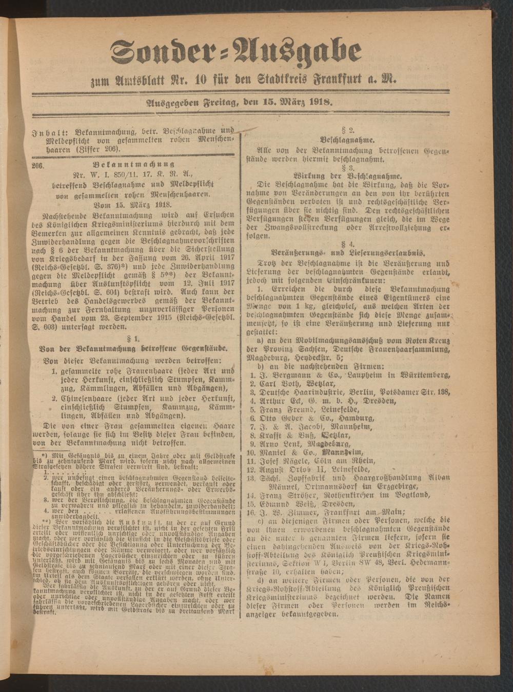 15.03.1918 = Sonder-Ausgabe zu Nr. 10