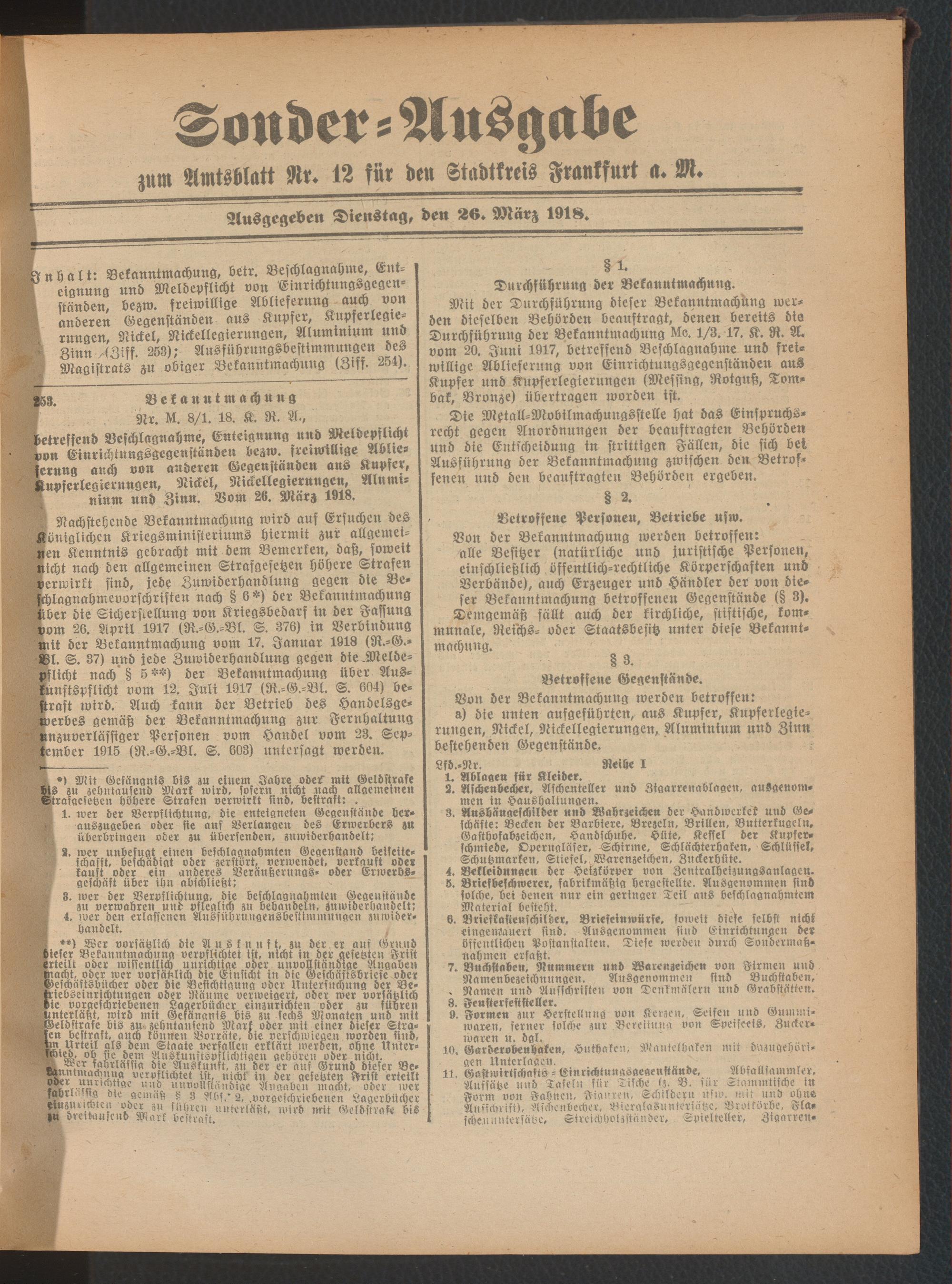 26.03.1918 = Sonder-Ausgabe zu Nr. 12