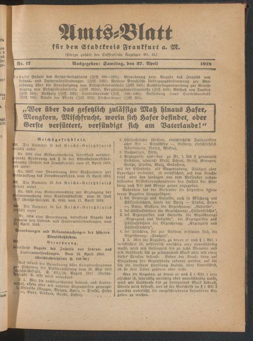 Amtsblatt für den Stadtkreis Frankfurt a.M.....