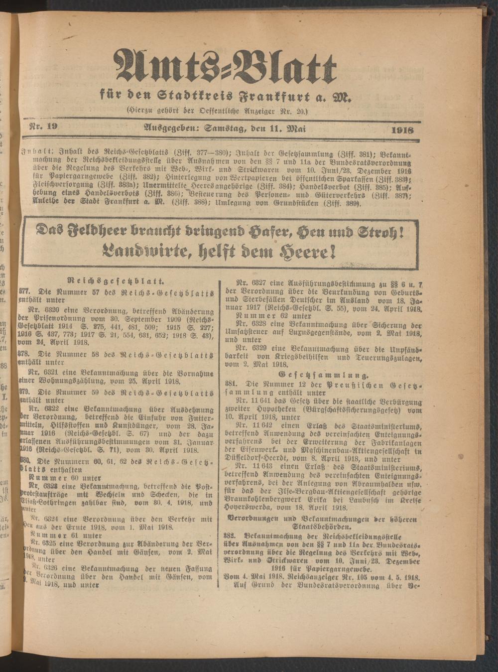Amtsblatt für den Stadtkreis Frankfurt a.M.....
