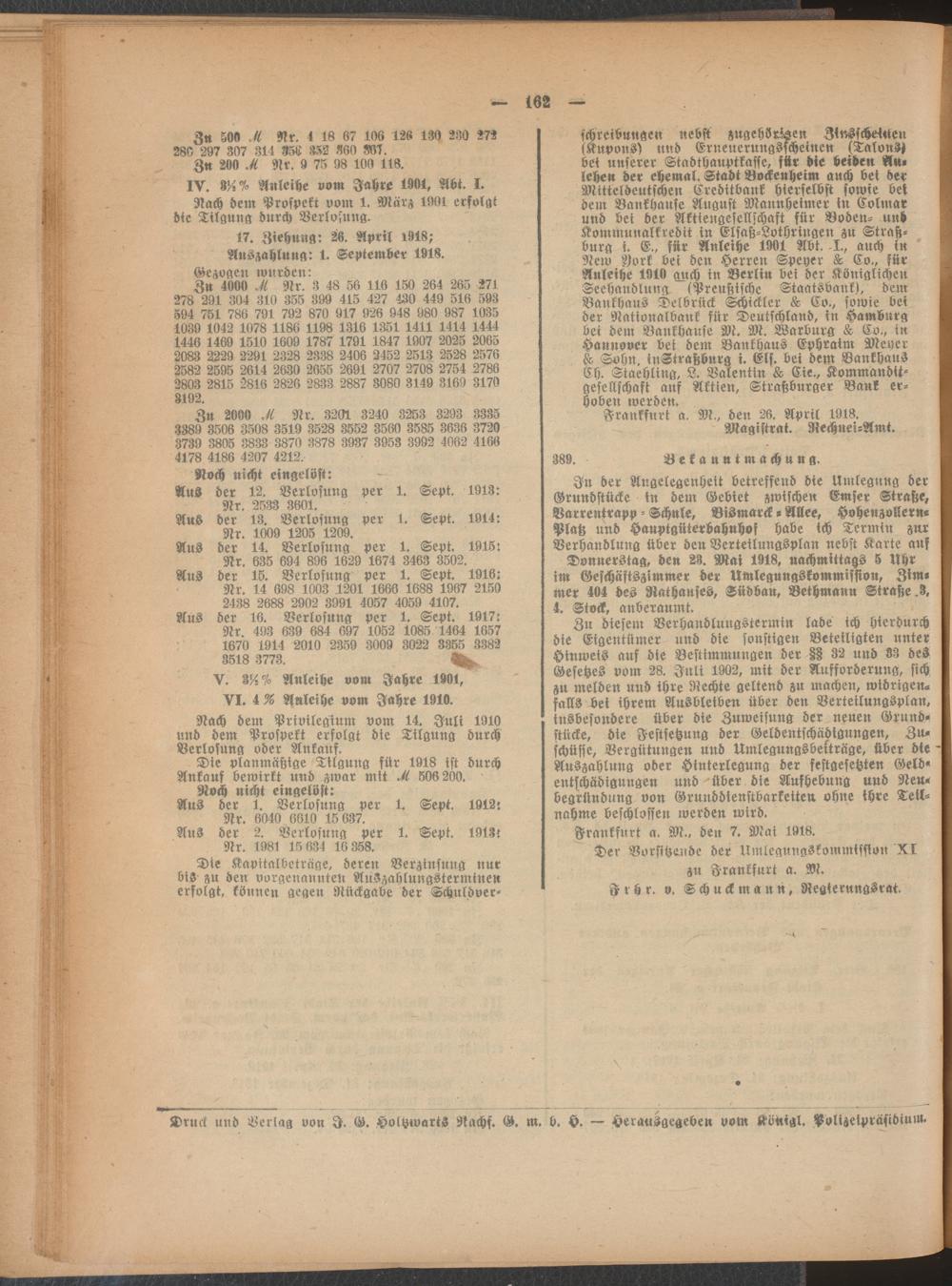 Amtsblatt für den Stadtkreis Frankfurt a.M.. 1828-1918