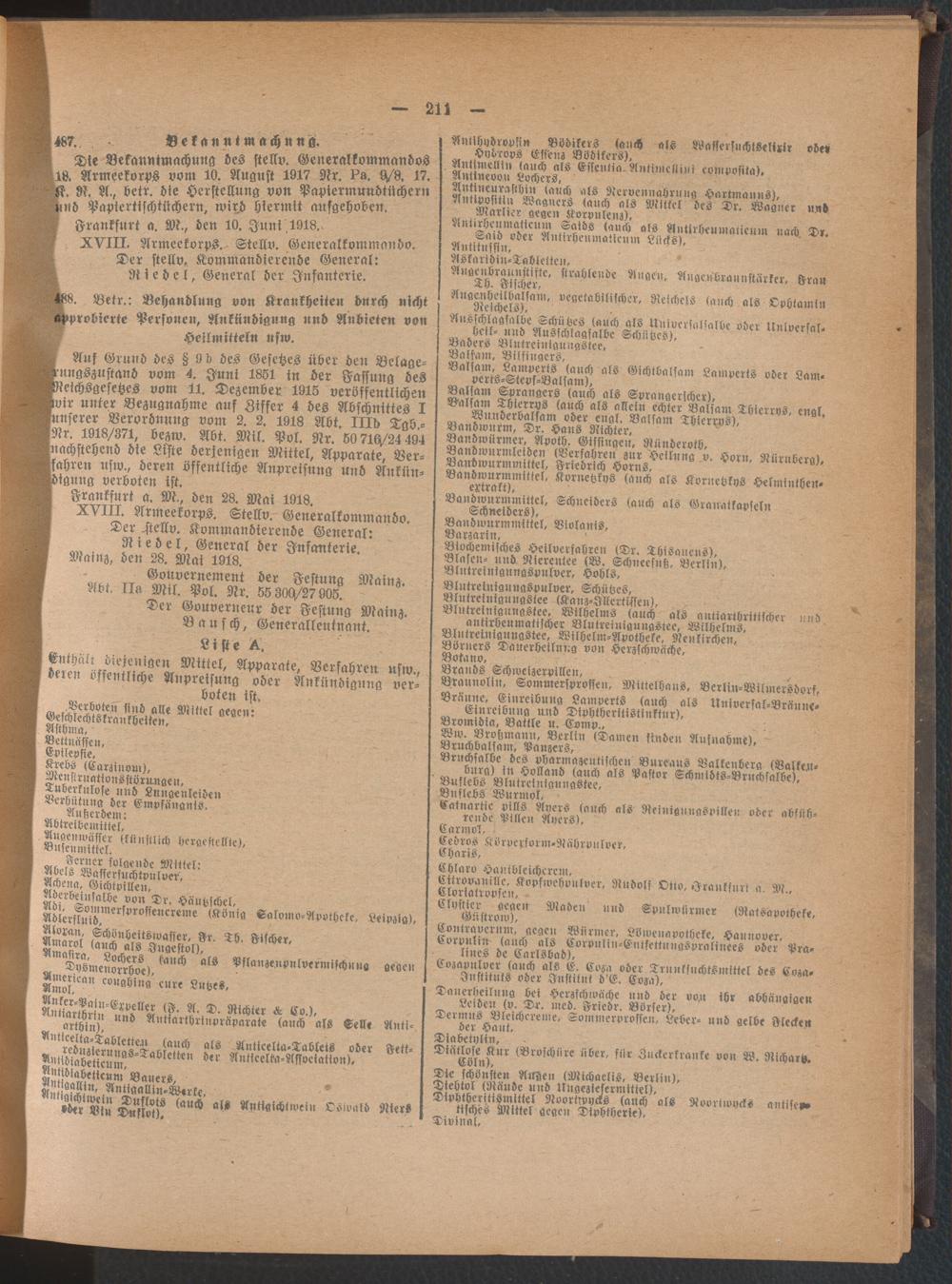 Amtsblatt für den Stadtkreis Frankfurt a.M.. 1828-1918