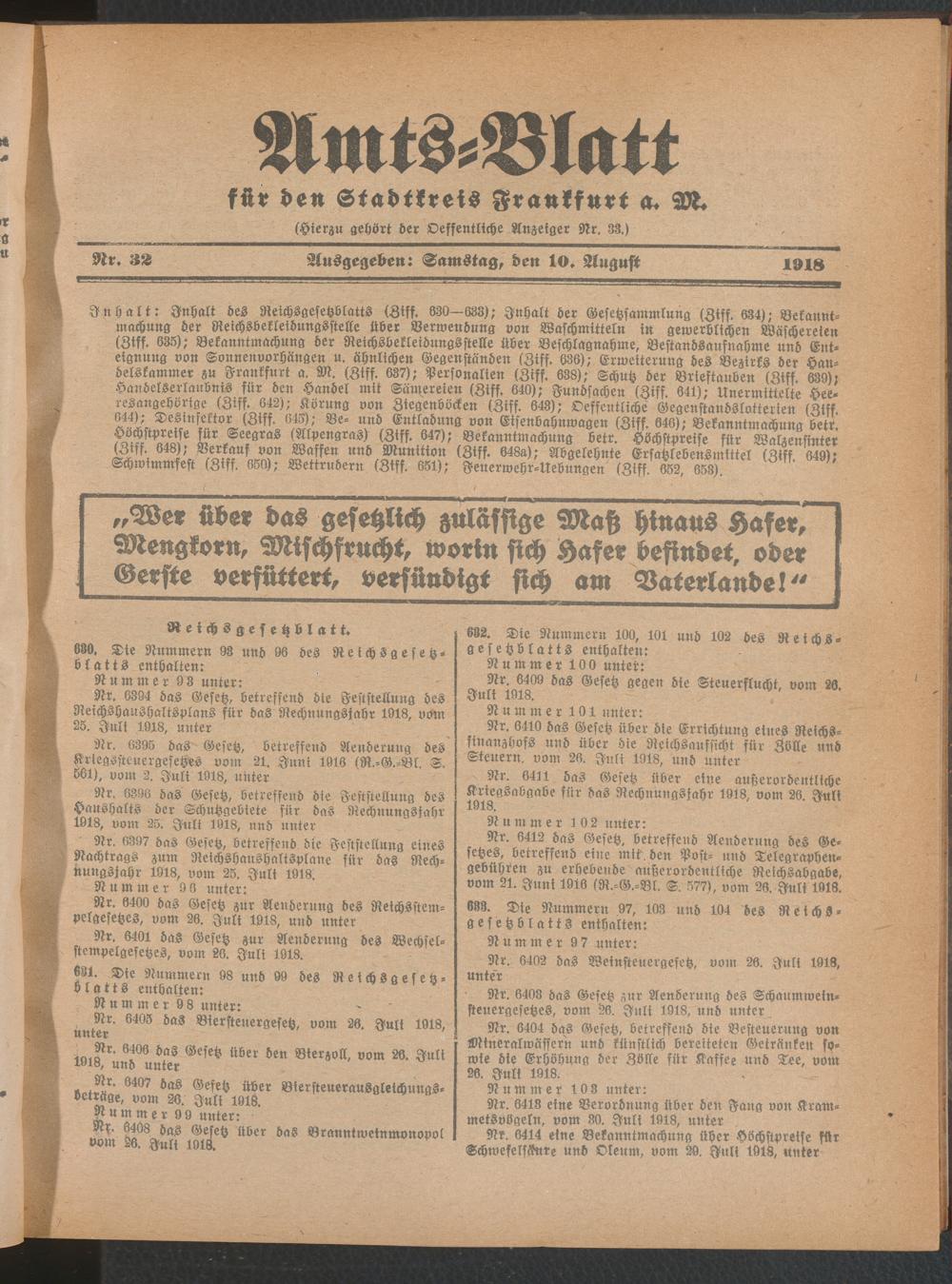 Amtsblatt für den Stadtkreis Frankfurt a.M.....