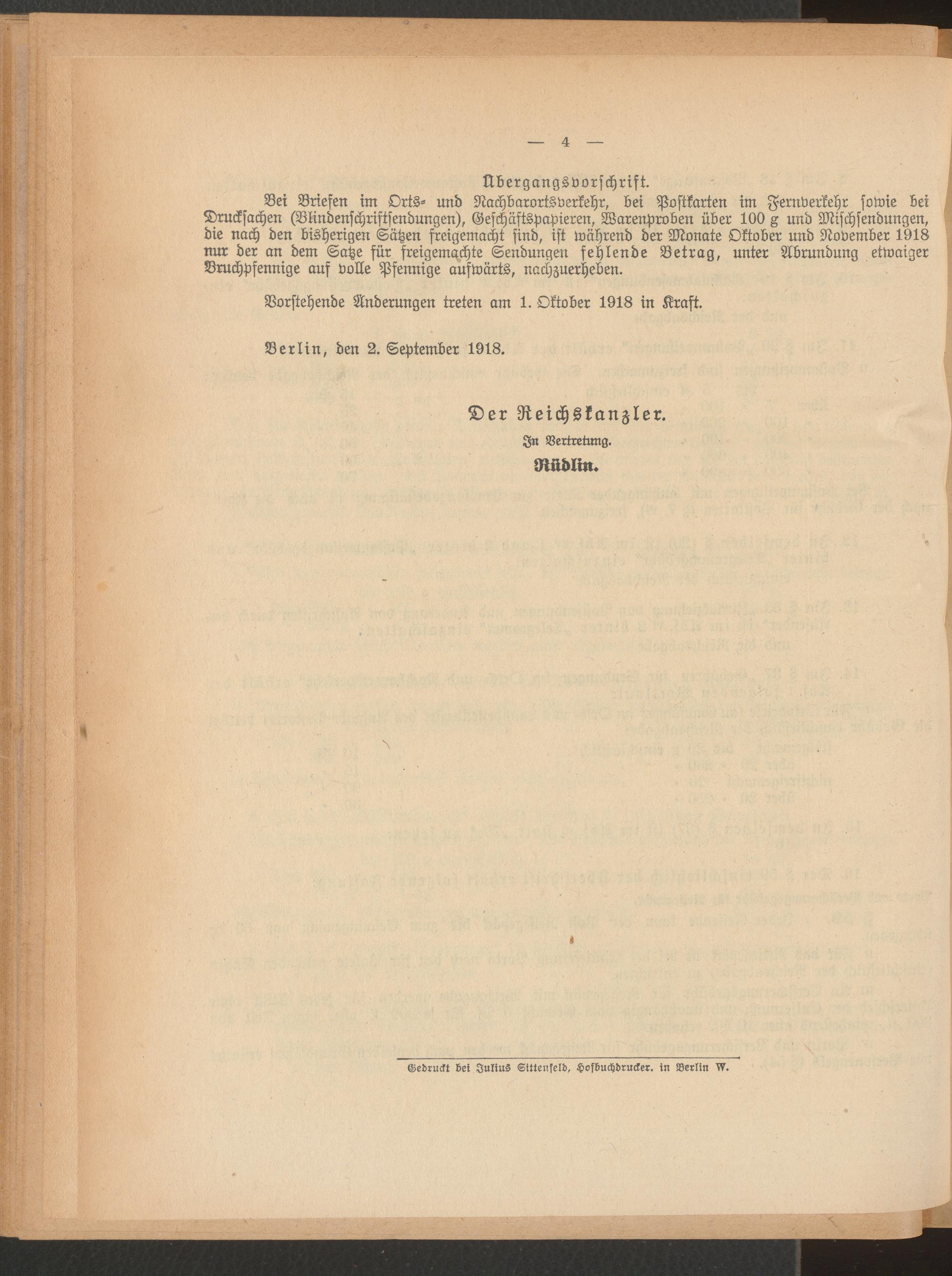 Sonderbeilage: Bekanntmachung betr. Änderung der Postordnung
