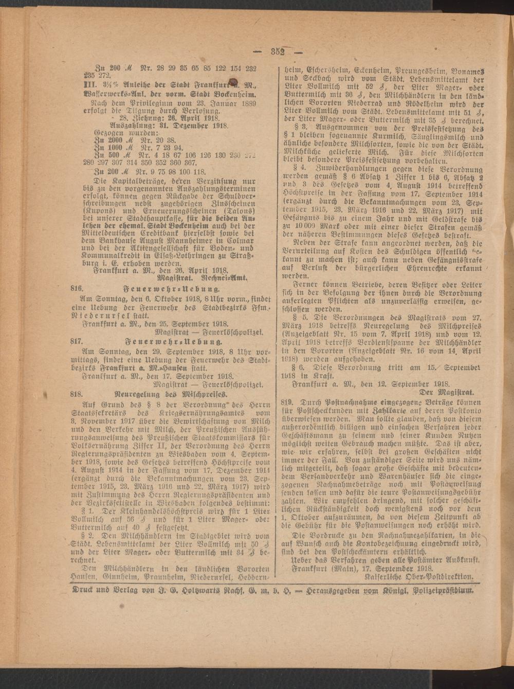 Amtsblatt für den Stadtkreis Frankfurt a.M.. 1828-1918