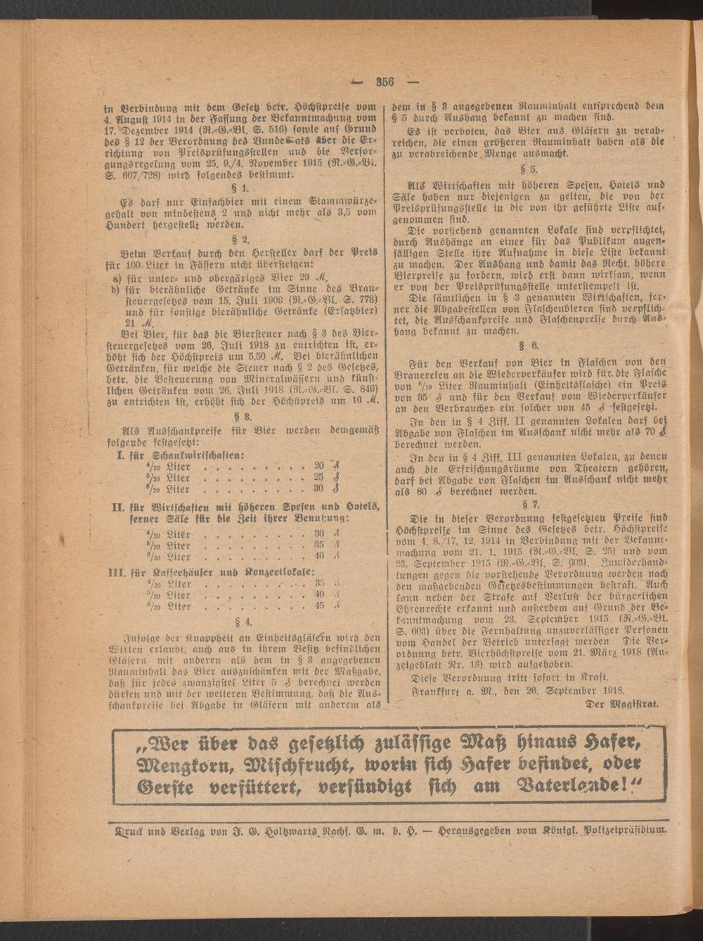 Amtsblatt für den Stadtkreis Frankfurt a.M.. 1828-1918