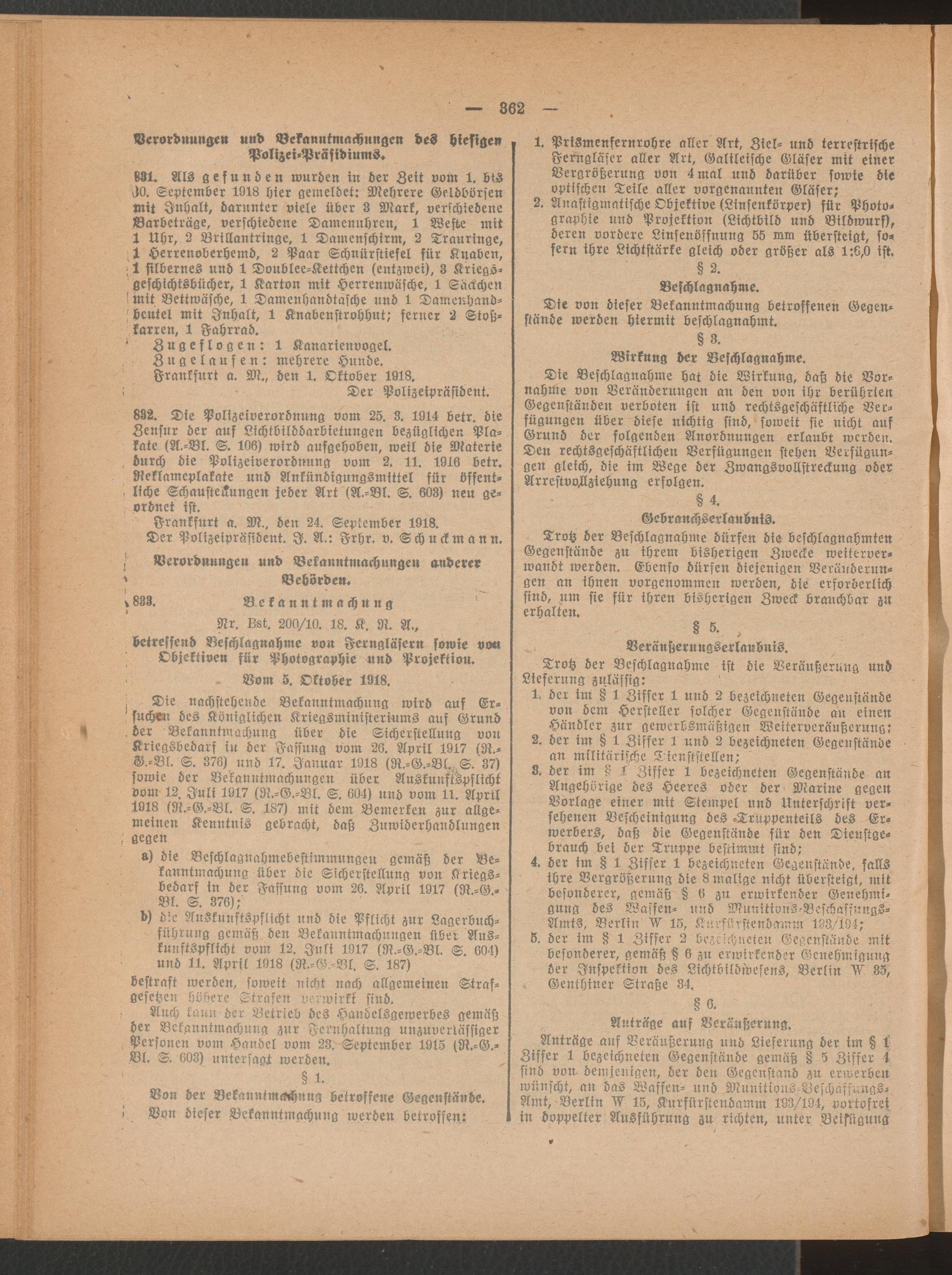 Amtsblatt für den Stadtkreis Frankfurt a.M.. 1828-1918