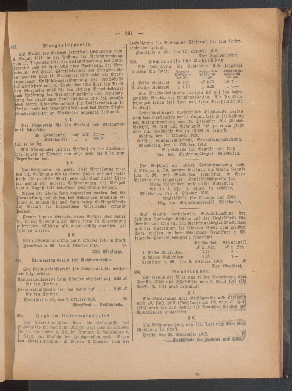 Amtsblatt für den Stadtkreis Frankfurt a.M.. 1828-1918