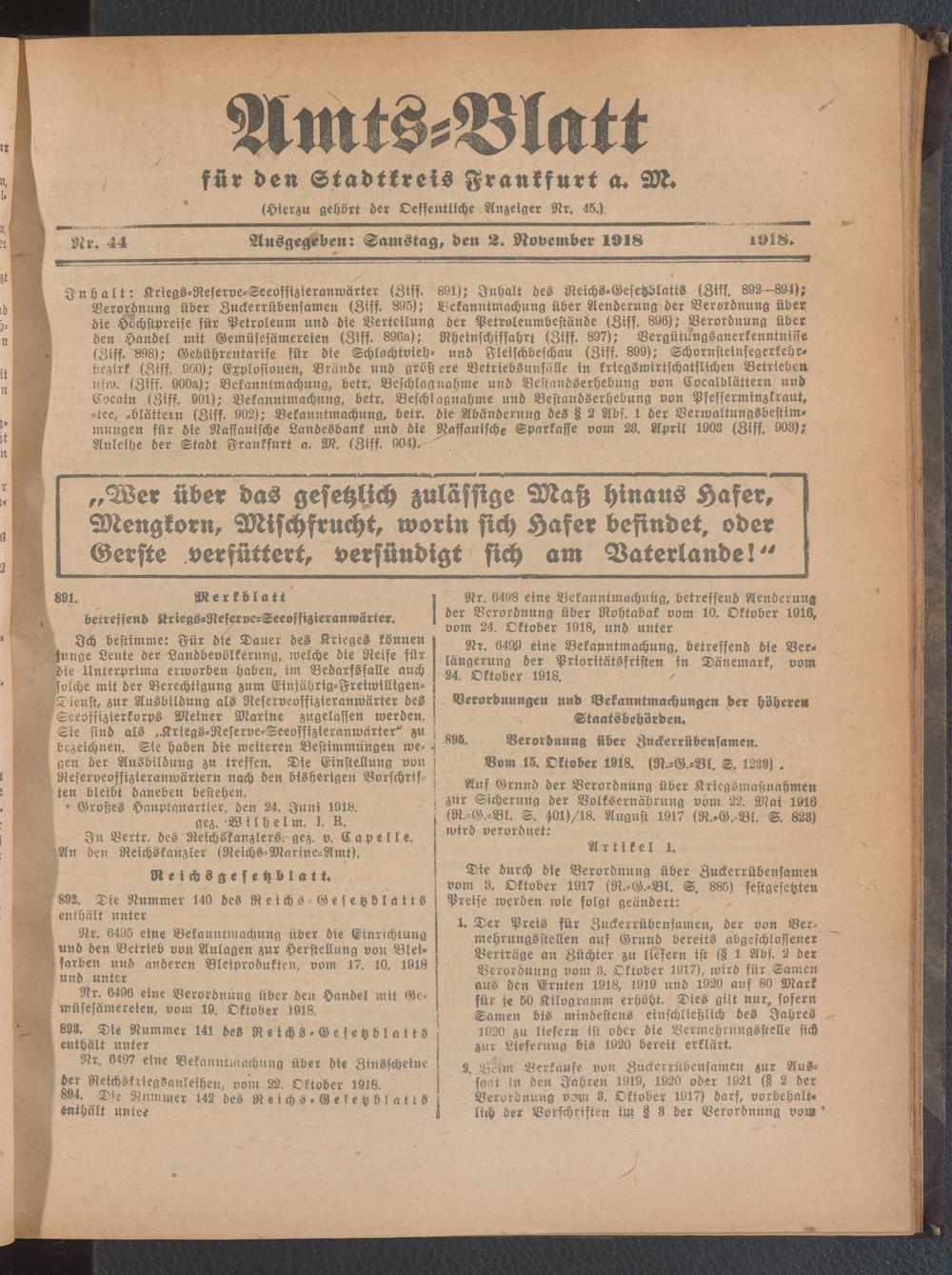 Amtsblatt für den Stadtkreis Frankfurt a.M.. 1828-1918