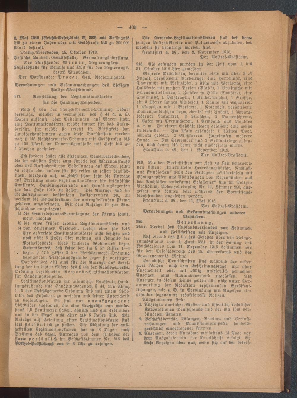 Amtsblatt für den Stadtkreis Frankfurt a.M.. 1828-1918