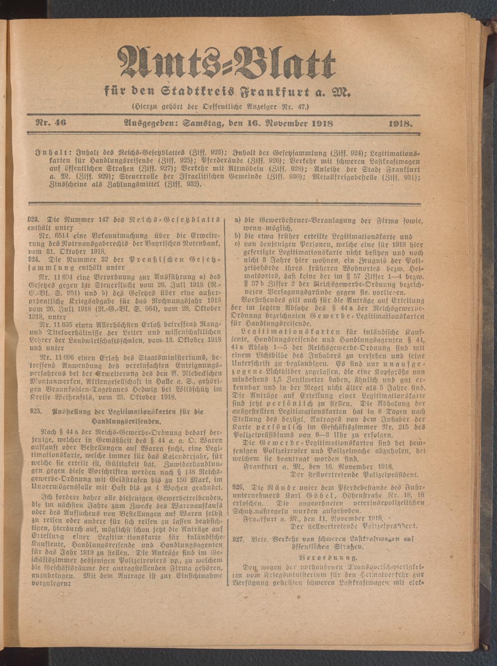 Amtsblatt für den Stadtkreis Frankfurt a.M.. 1828-1918