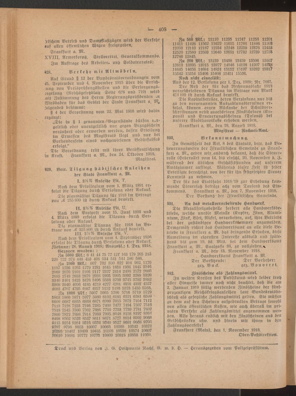 Amtsblatt für den Stadtkreis Frankfurt a.M.. 1828-1918