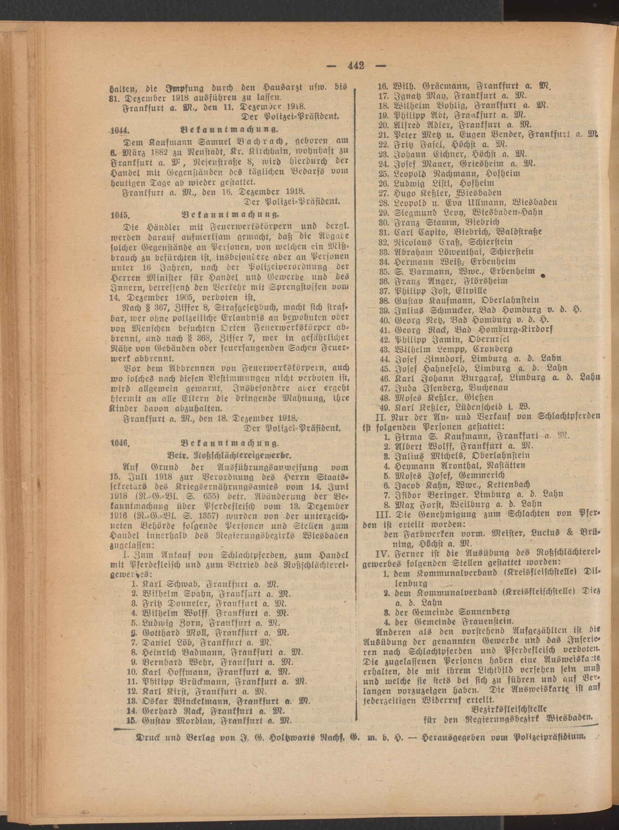 Amtsblatt für den Stadtkreis Frankfurt a.M.. 1828-1918