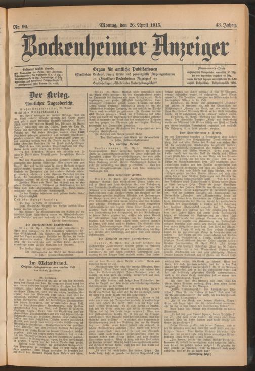 Regionale Zeitungen aus der Zeit des Ersten Weltkrieges